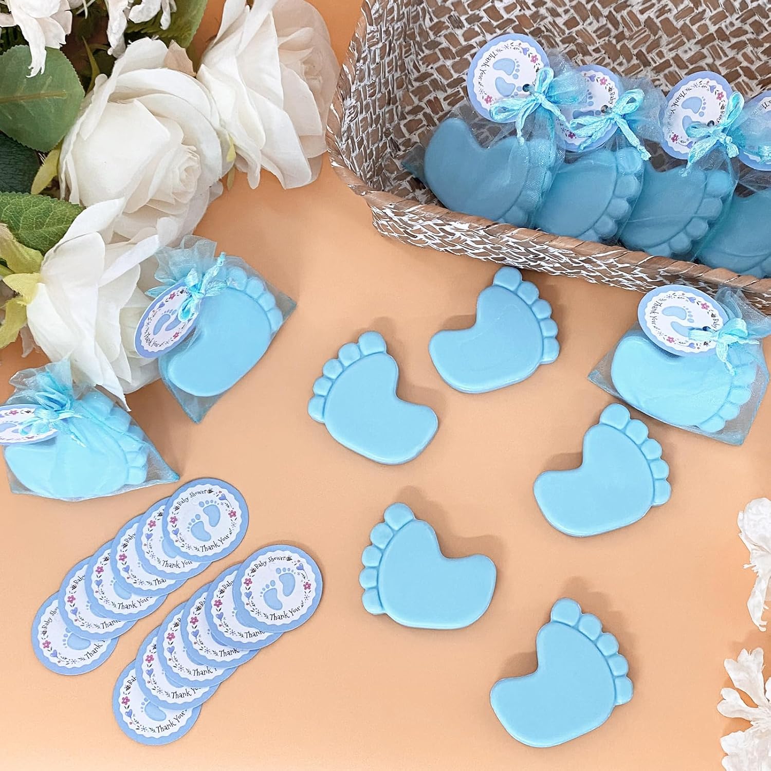 50 Sets Baby Shower Favors Refreshing Feet Soap Perfect for Guests Gifts with Organza Bags Thanks Cards Birthday Party Decoration Game Prizes(blue)