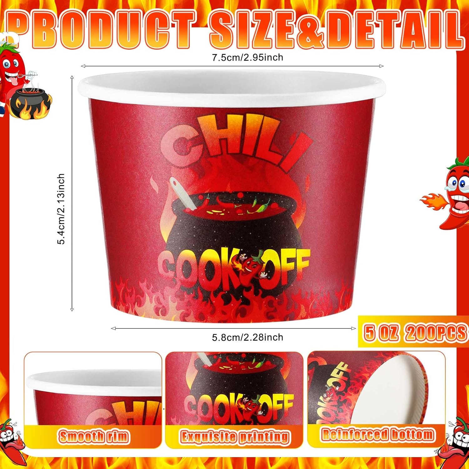 - Chili Cooking Cups Bulk: the chili cook off paper cups set includes 200 chili cooking contest tasting cups, 50 in a pack, 4 packs in total; These disposable paper cups are printed with unique chili pattern and text, making them more formal and attractive, ideal for chili festivals, cook offs, catering, restaurants and cinco de mayo party etc