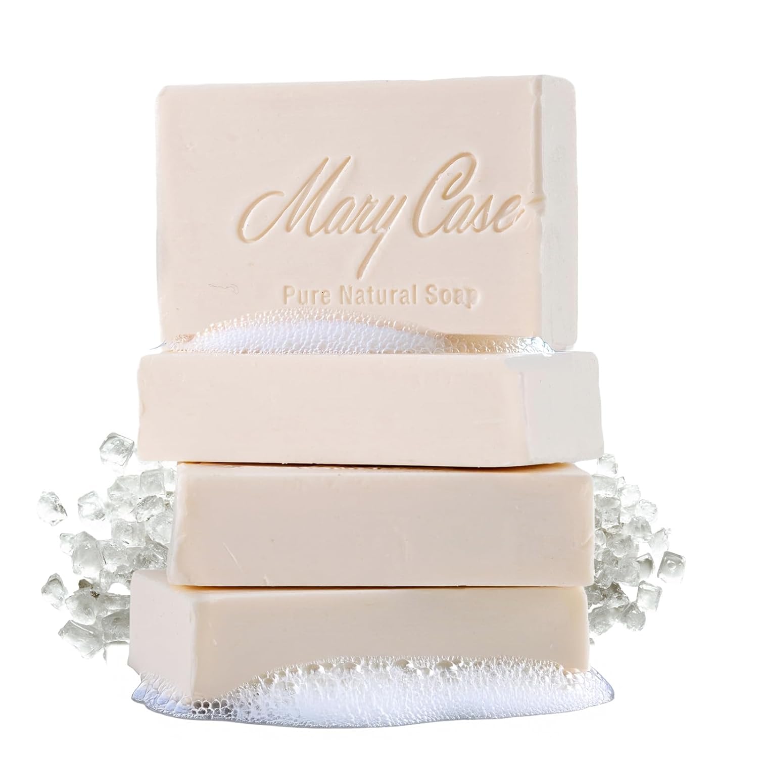Mary Case All Natural Bar Soap for Men & Women (Set of 4) - Sea Salt Bath Soap Bar with Olive and Coconut Oils - Vegan Bath Soaps Bars for Exfoliating, Balancing Moisture & Mineral-Rich Nourishment