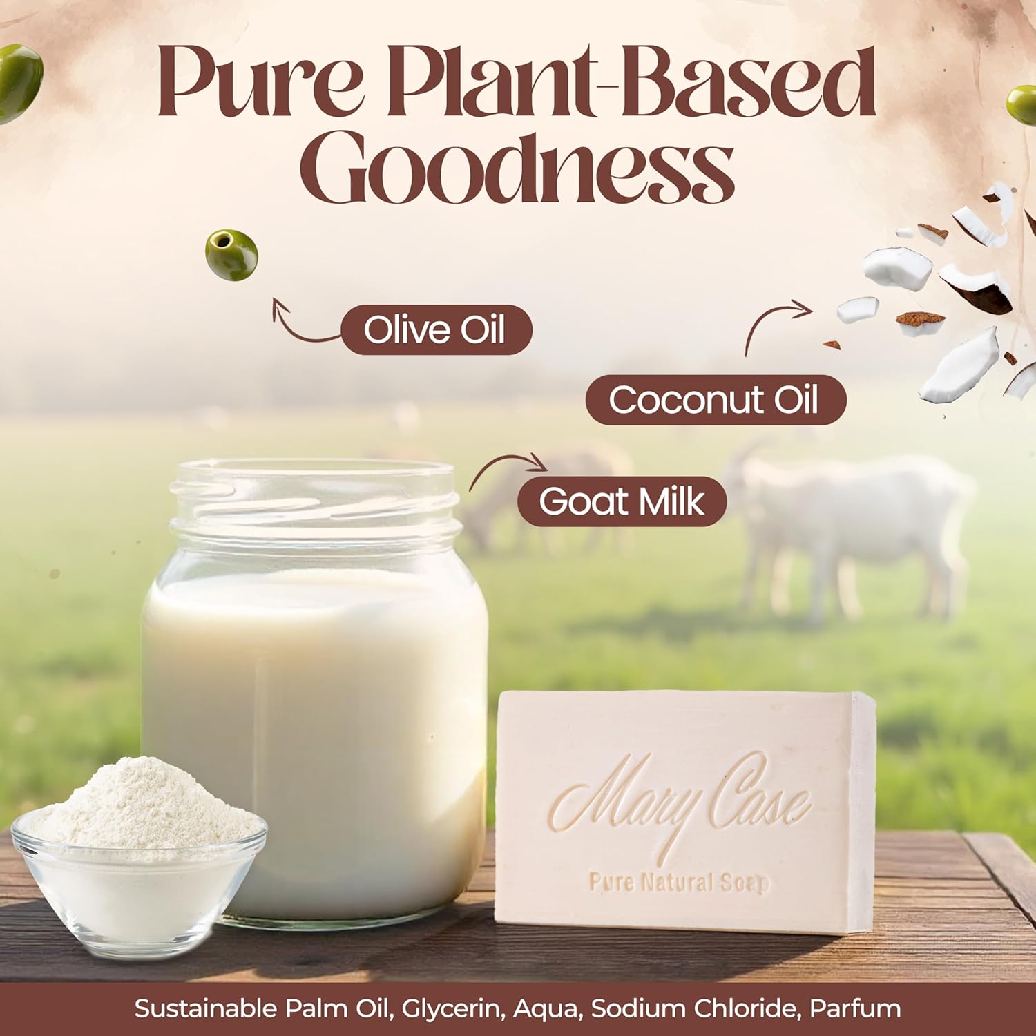 Mary Case All Natural Bar Soap for Men & Women (Set of 4) - Goat Milk Soap Bar with Olive and Coconut Oils - Bath Soaps Bars for Deep Moisturizing and Softening Dry Skin