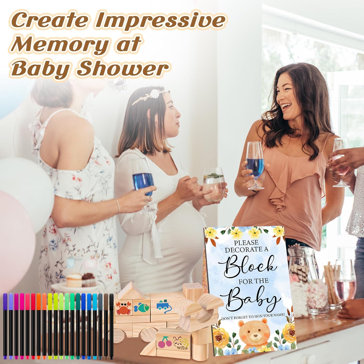 - BABY SHOWER BLOCKS PLAY SET: You will receive 1 wooden sign, 100 small wooden blocks, 20 markers in different colors, 20 sheets of modules for free, rich quantity and beautiful combination to meet your crafting needs