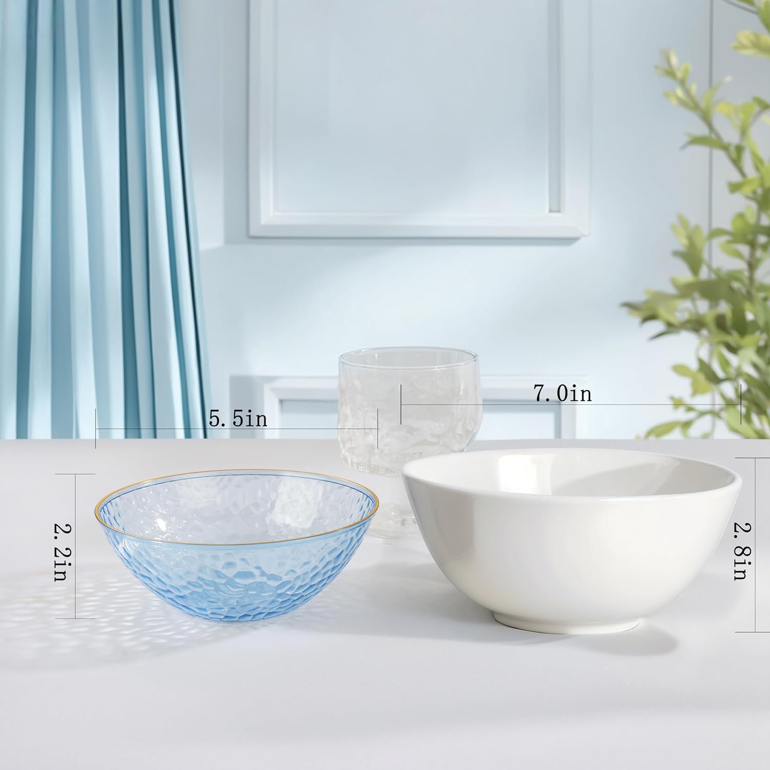- Great Design:Our transparent hard plastic bowl looks like glass with a stunning hammer texture, and the golden edge adds a touch of elegance to the dining table, making it a major highlight on the table.
