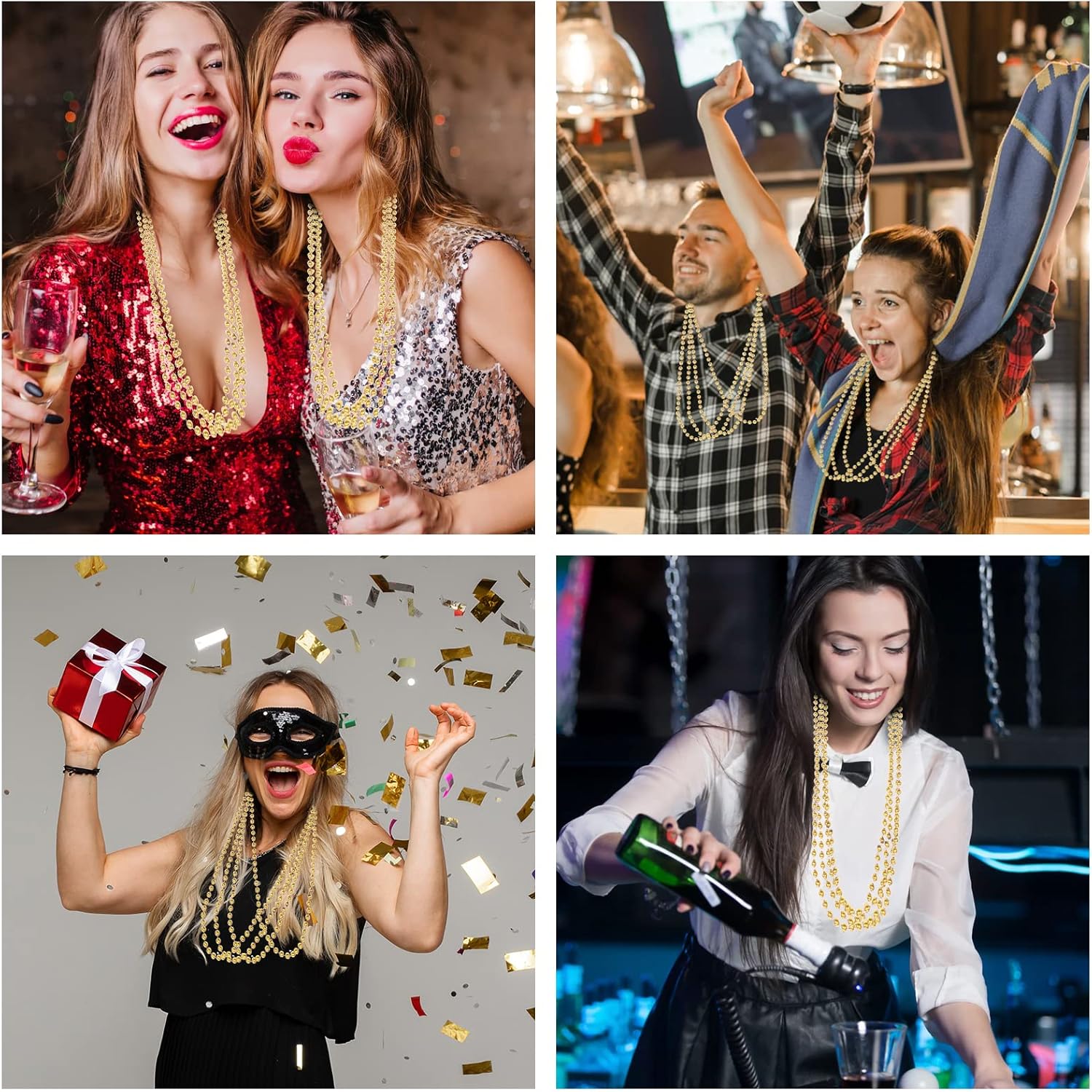 - Perfect Gold Party Favors: These gold beaded necklaces are perfect for Mardi Gras parades, gold party beads necklaces are also widely used for Christmas, New Year's Eve events, St. Patrick's Day celebrations, Halloween party, birthday party, nightclub dress-up party, wedding favors and parades, etc. Ideal Mardi Gras Accessories