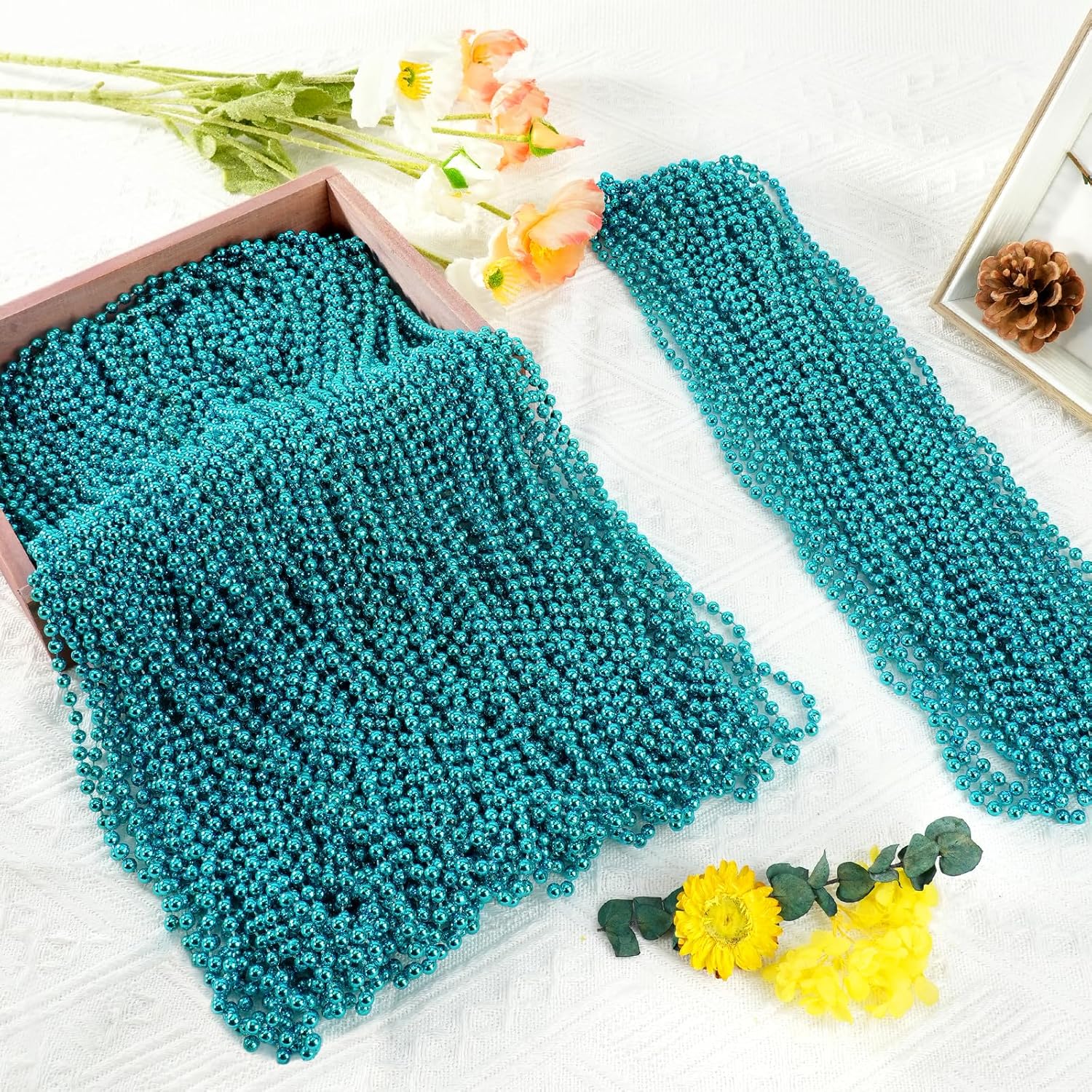 - Teal Beads Necklaces: You will get 100 pcs teal bead necklaces, bulk round beaded necklaces, a sufficient number to meet your home and party decoration needs at various holiday events. Ideal Mardi Gras decorations