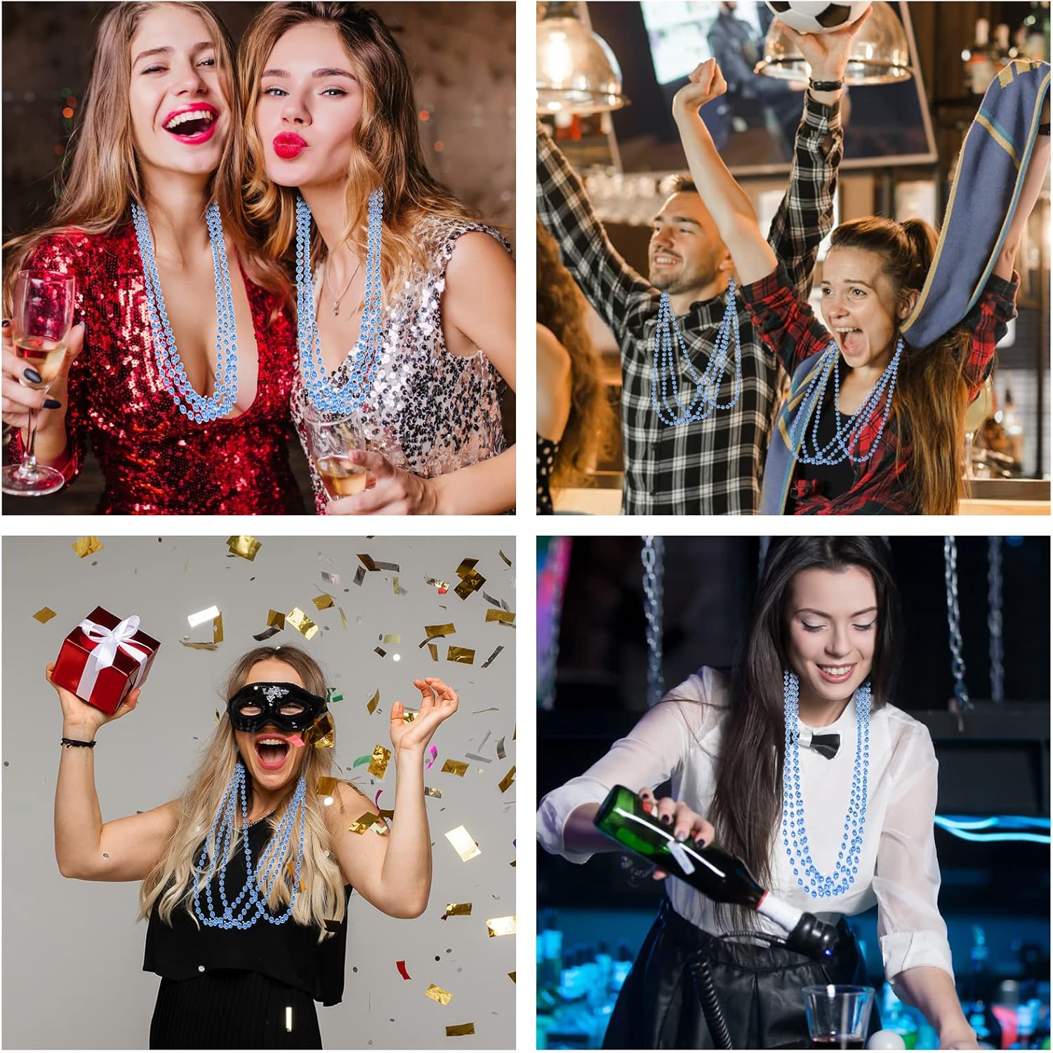 - Perfect Blue Party Favors: These blue beaded necklaces are perfect for Mardi Gras parades, blue party beads necklaces are also widely used for Christmas, New Year's Eve events, 4th of July Independence Day parades, St. Patrick's Day celebrations, birthday party, nightclub dress-up party, wedding favors, etc. Ideal Mardi Gras Day Accessories