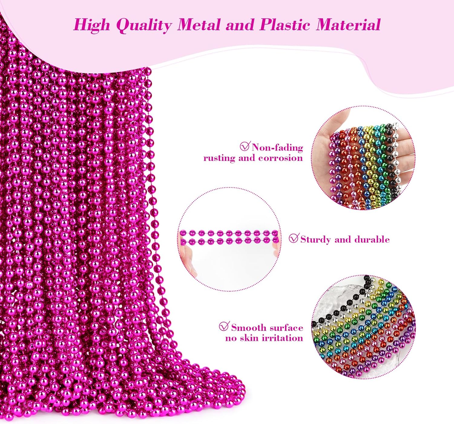 - Premium Quality: Hot pink Mardi Gras beads necklaces are made of sturdy and durable plastic material, do not break easily, non-fading, rusting and corrosion, round metallic beads have a smooth surface and are non-irritating to the skin, providing you with a comfortable wearing experience while you can use it for a long time