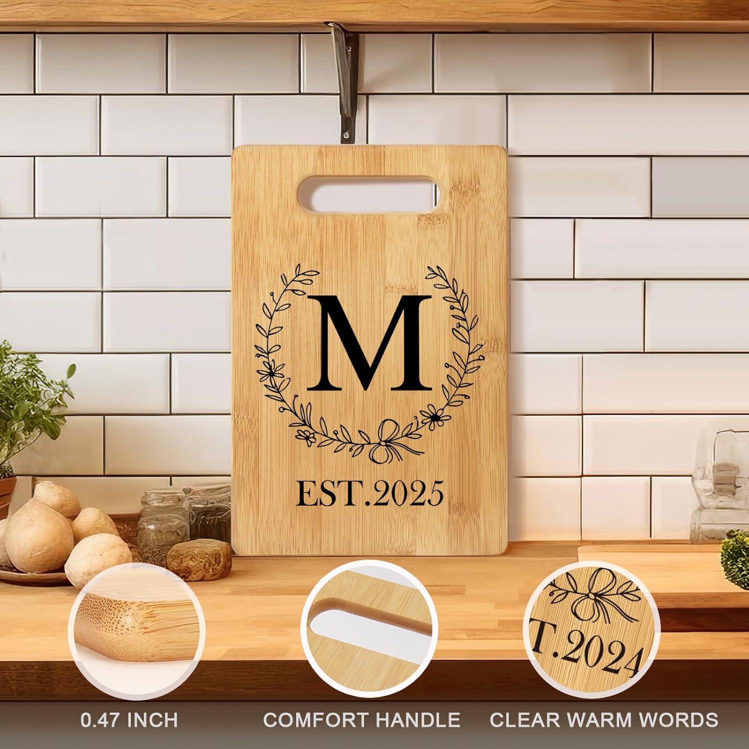 - Wedding Gift for Couple 2025:The personalized cutting board with a monogrammed and EST. 2025 design commemorates important moments. The initial monogram adds a personal touch to the gift. Thoughtful detail adds a unique and sentimental element, making it a cherished keepsake for the recipient. Great birthday gifts or wedding gifts for mom, sister, wife, daughter, aunt, friend, bestie, bridesmaid, bride, neighbor
