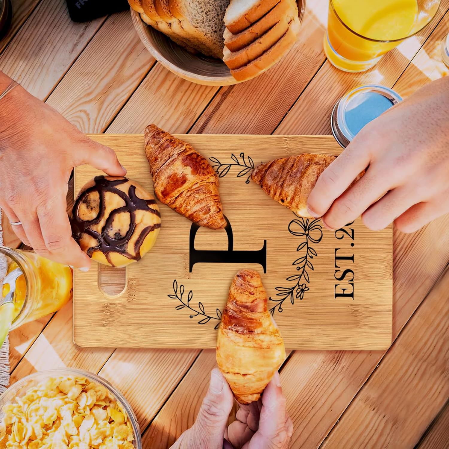 - Wedding Gift for Couple 2025:The personalized cutting board with a monogrammed and EST. 2025 design commemorates important moments. The initial monogram adds a personal touch to the gift. Thoughtful detail adds a unique and sentimental element, making it a cherished keepsake for the recipient. Great birthday gifts or wedding gifts for mom, sister, wife, daughter, aunt, friend, bestie, bridesmaid, bride, neighbor