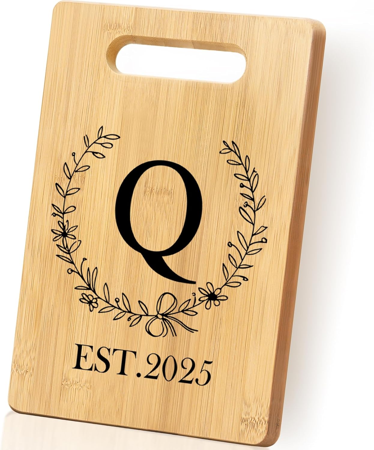 Personalized Cutting Board, Monogrammed Wedding Gift for Couple Newlywed 2025, Initial Birthday Gifts for Women, Gift for Bridal Shower Wedding Shower Engagement Anniversary Housewarming(Letter-Q)