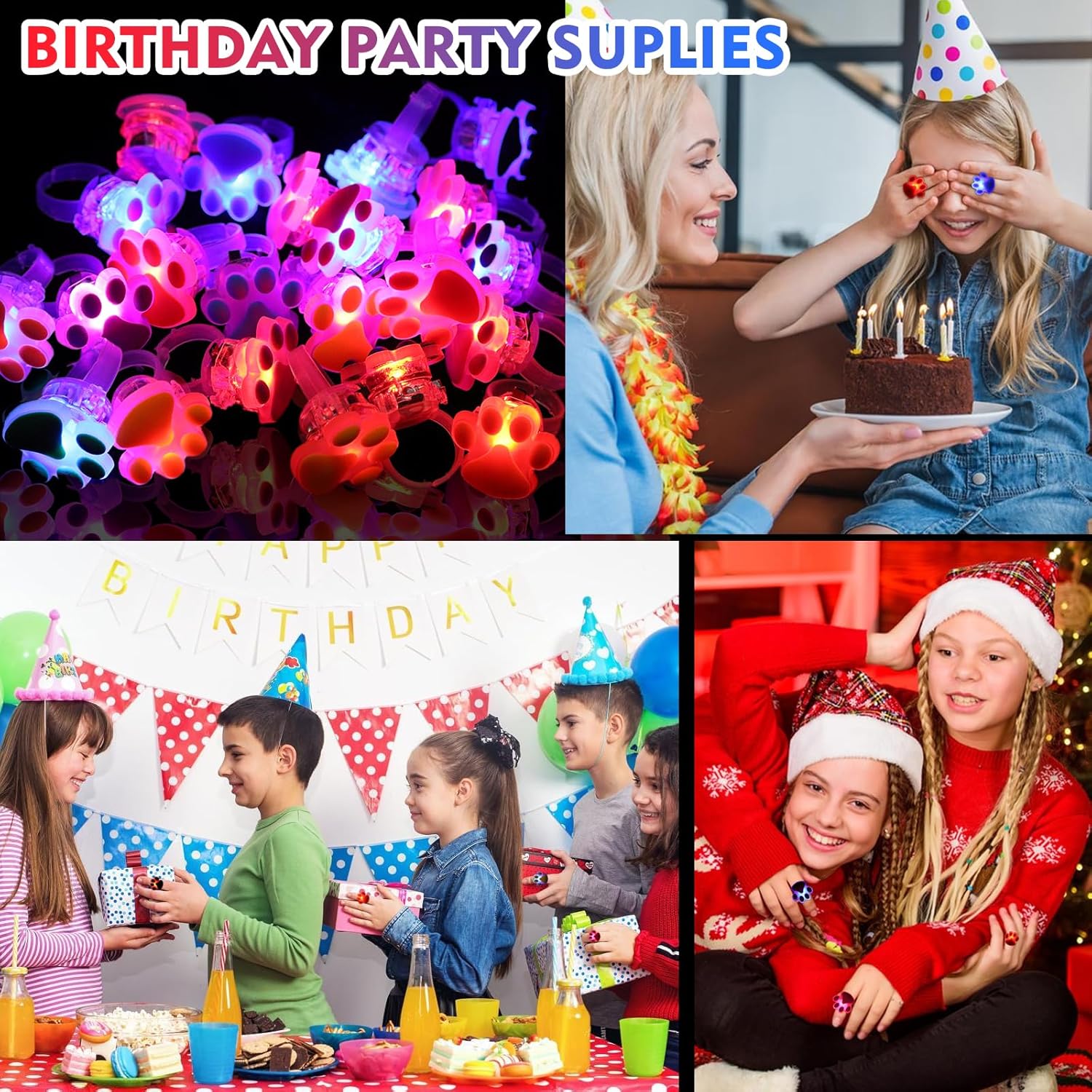 - WIDE USE: Paw print light up rings can not only be worn on the hand to use also can be hung on the wall, table, Christmas tree as a decoration. Even it can be put on the cake as a cake topper to use. Let you enjoy the joy of the party in the dark
