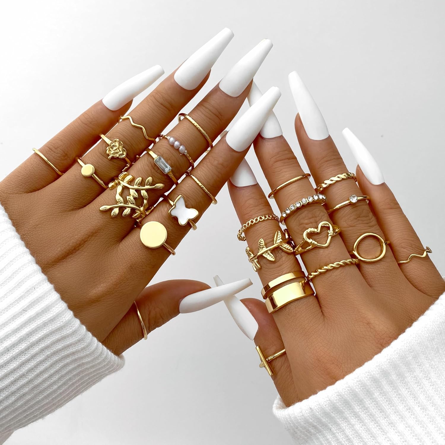- Gold Jewelry Rings: You’ll receive a set of 24 gold rings featuring a variety of styles, including CZ rings, chunky rings, twist rings, leaf rings, butterfly rings, and more. They’re perfect for stacking, wearing as thumb rings, or styling as knuckle rings. A great value for your money
