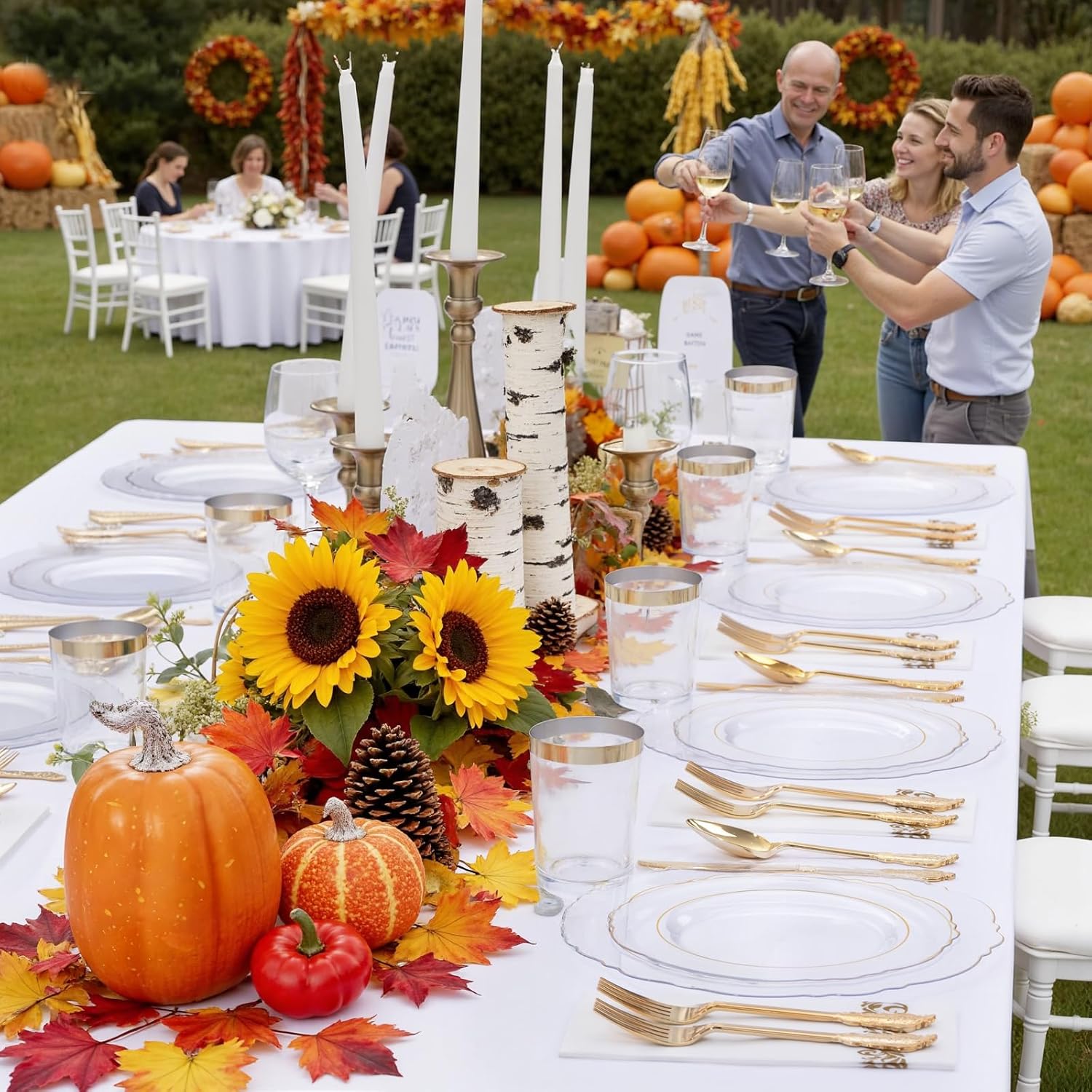 - Versatile Use- From weddings to tea parties, clear gold dinnerware elevate any setup. This clear plastic plates with gold trim is a must-have for effortless, elegant entertaining.