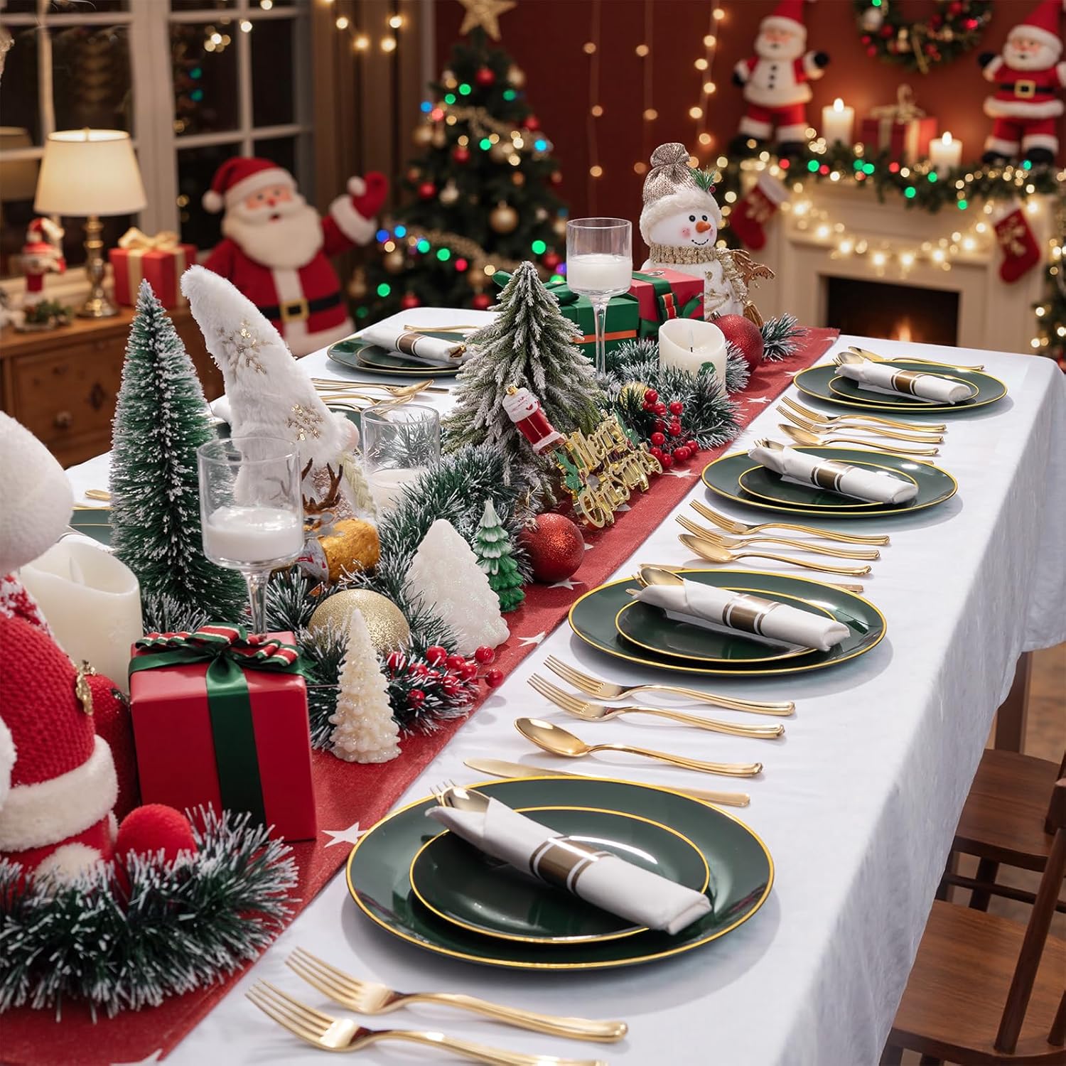 - Elegant Design - These Christmas plastic plates for party with elegant gold rims add festive flair to your Christmas table and complement the Christmas evergreen trees, creating a warmer atmosphere for Christmas and Christmas Eve