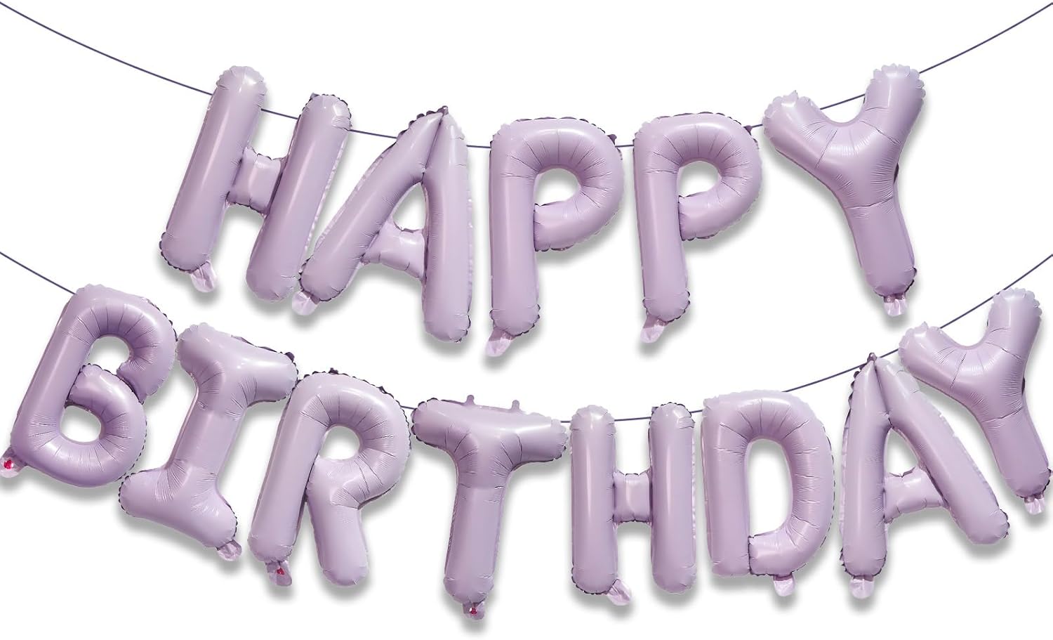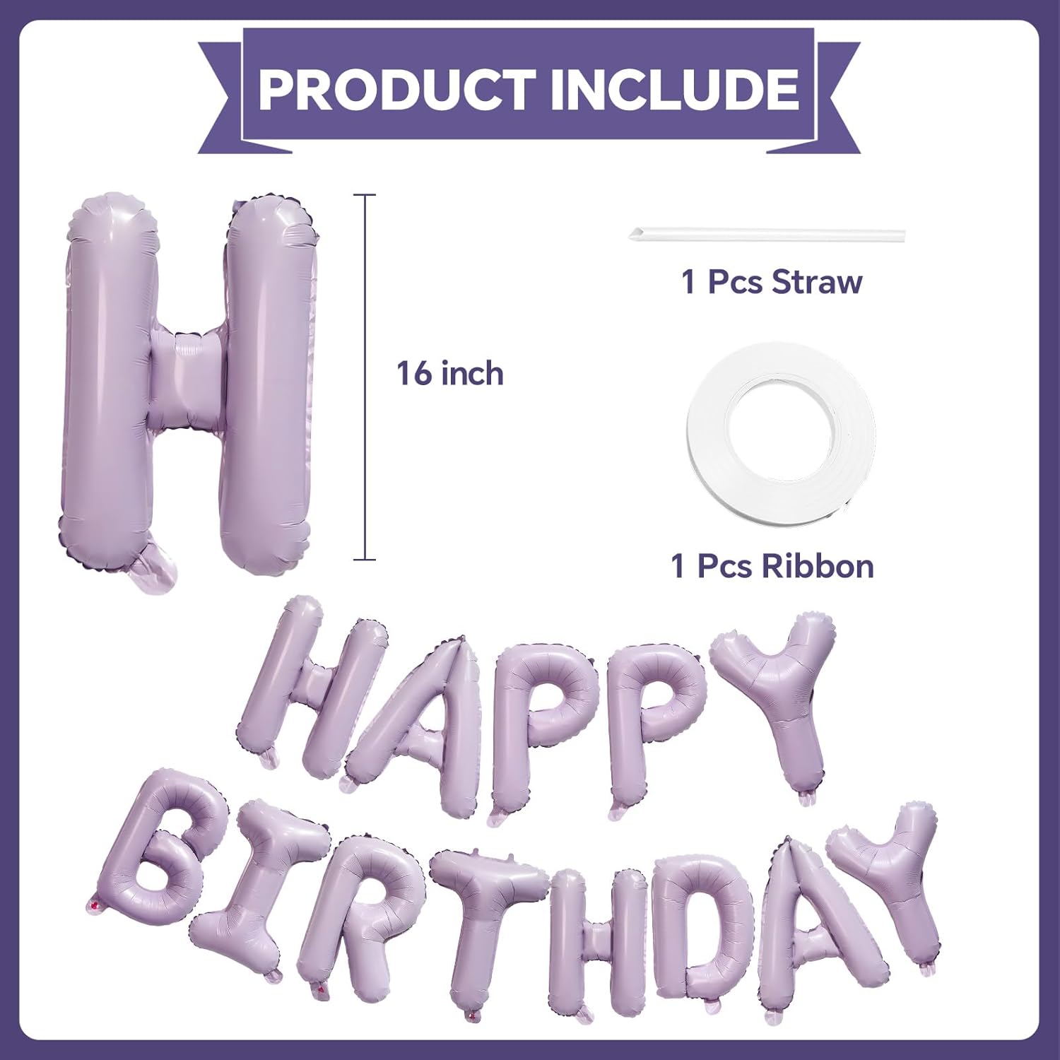 KALOR Pastel Purple Happy Birthday Balloons Banner, 16 Inch Mylar Foil Letters Balloon Sign for Women, Men, Boys & Girls Kids Birthday Decorations Photo Backdrop