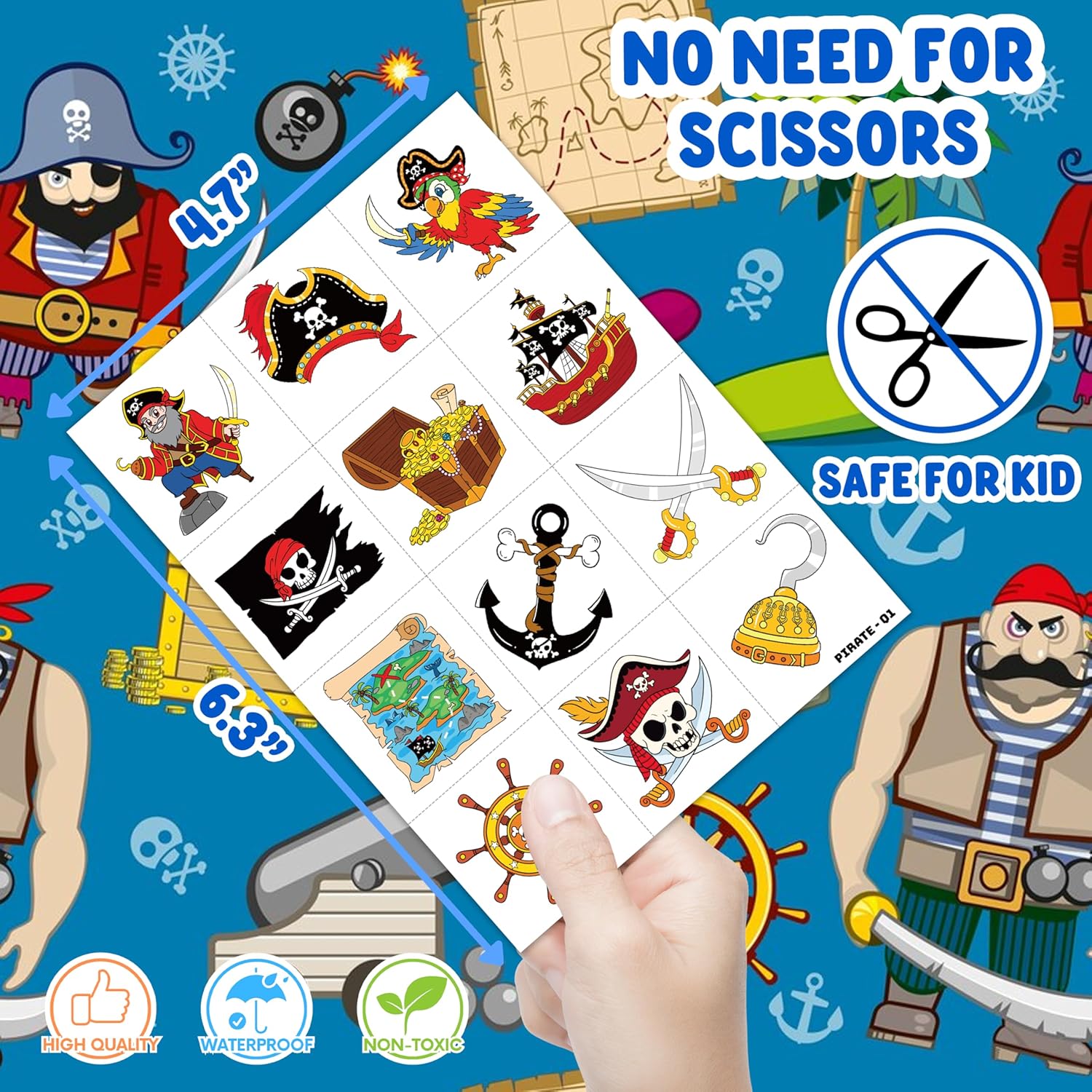 96PCS Pirate Ship Nautical Pre-Cut Temporary Tattoos for Kids | Super Cute Theme Birthday Party Favors, Supplies, Decorations, Mermaid Treasure Fake Tattoo Stickers (Multiple)