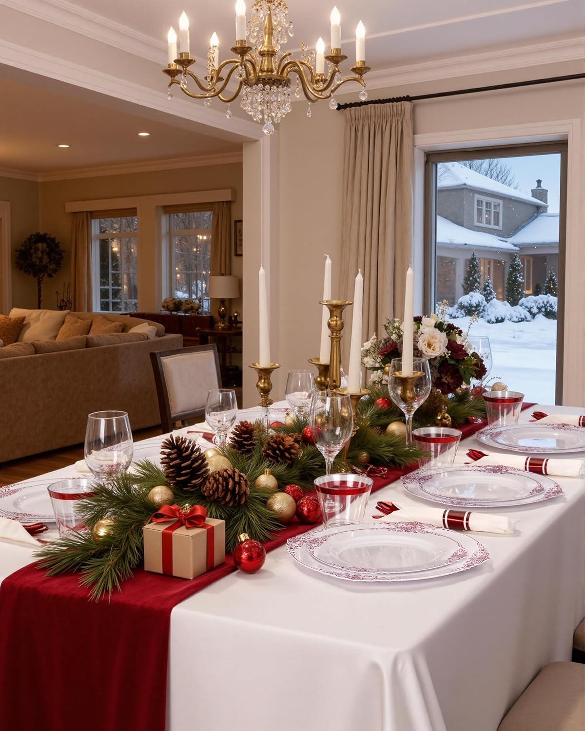 - Hassle-Free Cleanup - Enjoy your event without the worry of washing dishes afterward with Christmas dinnerware set. Our white plastic plates with red rim make post-party cleanup a breeze, allowing you to focus on what matters most - celebrating with your guests