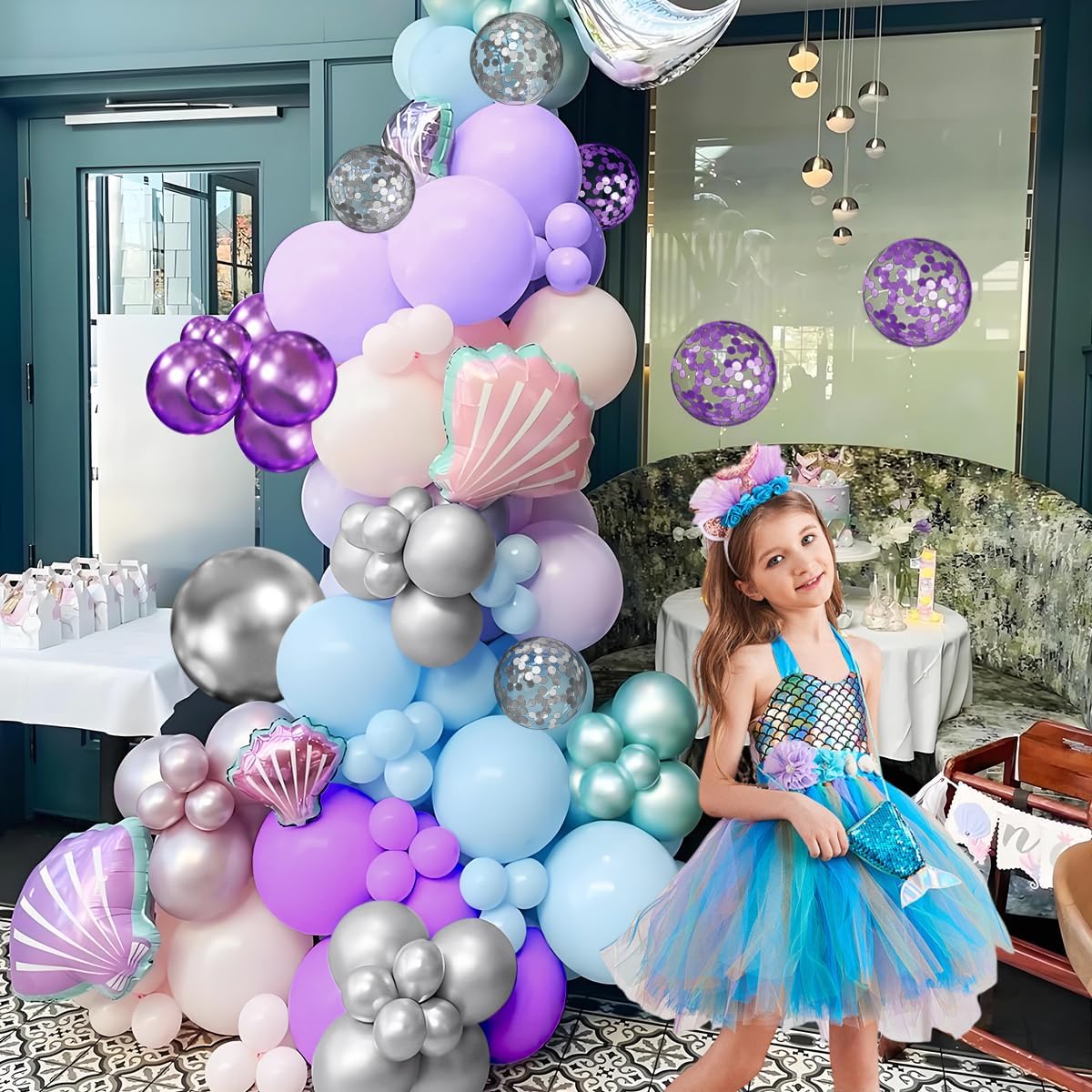 Purple Silver Balloon Arch Kit, 147PCS Pastel Purple Matte Lavender Violet Metallic Lilac Silver Confetti Balloons Garland for Baby Girl Princess Party Birthday