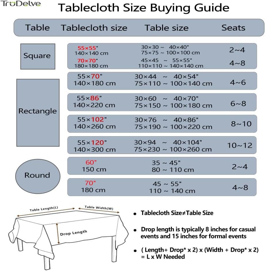 - SIZE-Round tablecloth measures 70" in Diameter,fits for round tables from 45" to 55" in diameter.