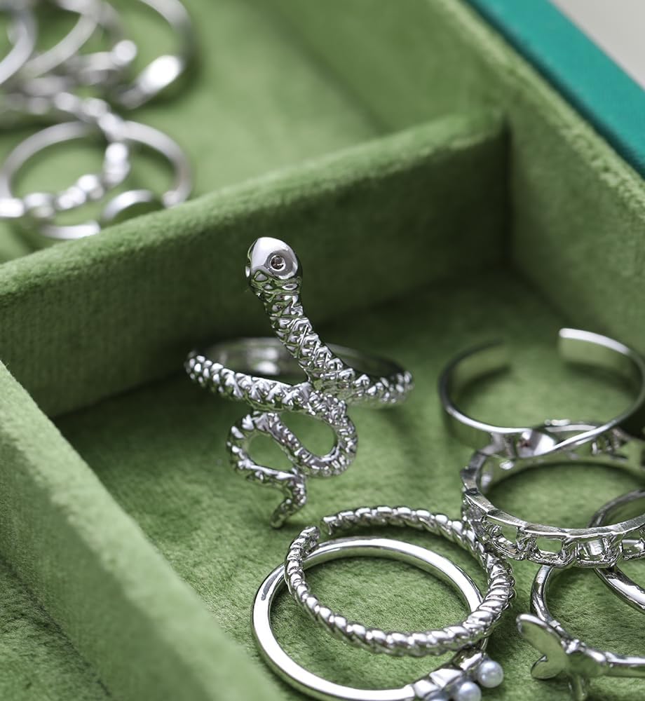 - Silver Knuckle Rings: You’ll receive a set of 30 silver rings featuring a variety of styles, including snake rings, chunky rings, twist rings, wave ring, butterfly rings, and more. They’re perfect for stacking, wearing as thumb rings, or styling as knuckle rings. A great value for your money