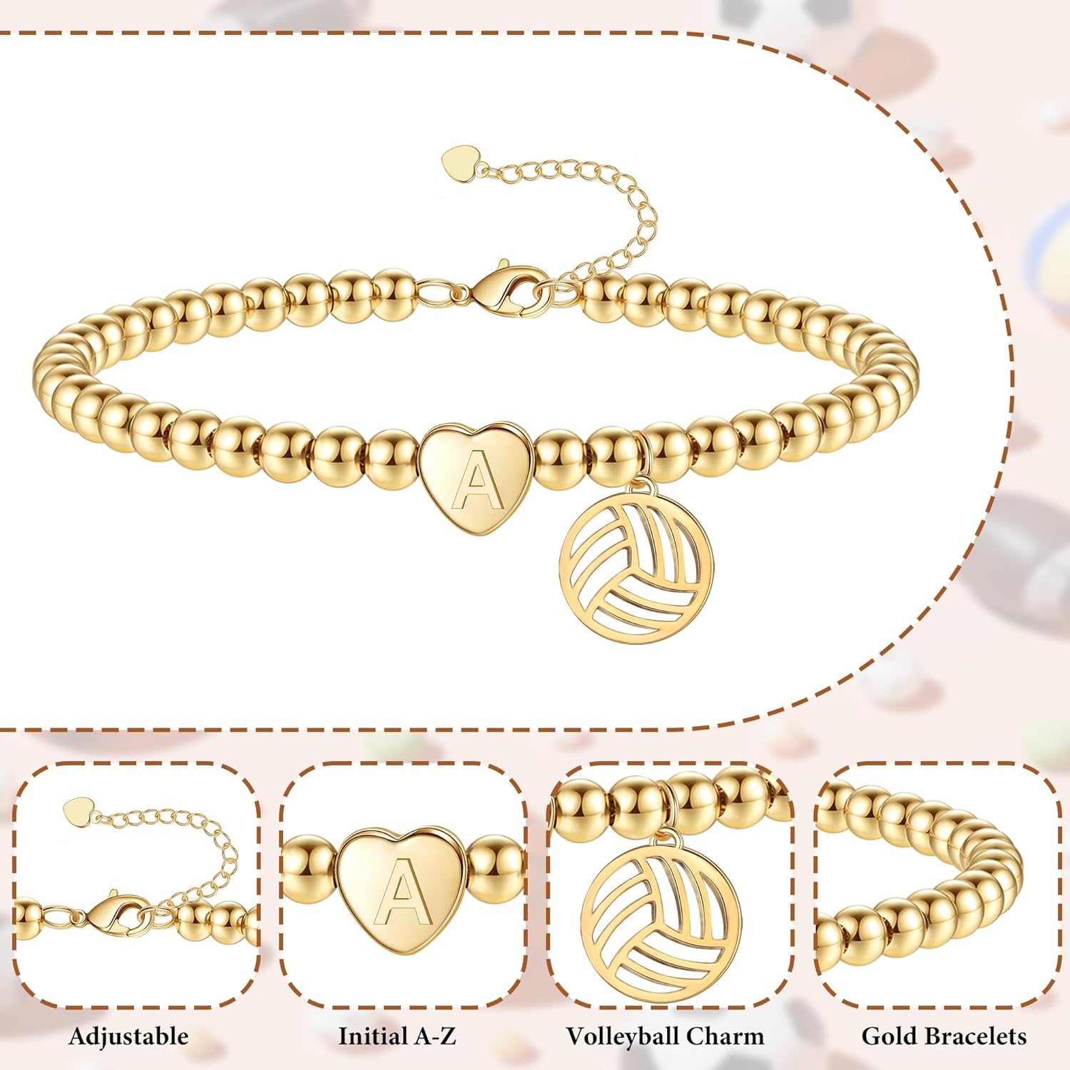 - Gold Bracelets for Women Material: The letter bracelet is 14K gold-plated and comes with heart-shaped letters and a volleyball pendant. Beaded bracelets for women are comfortable and durable, suitable as volleyball gifts for team, christmas stocking stuffers