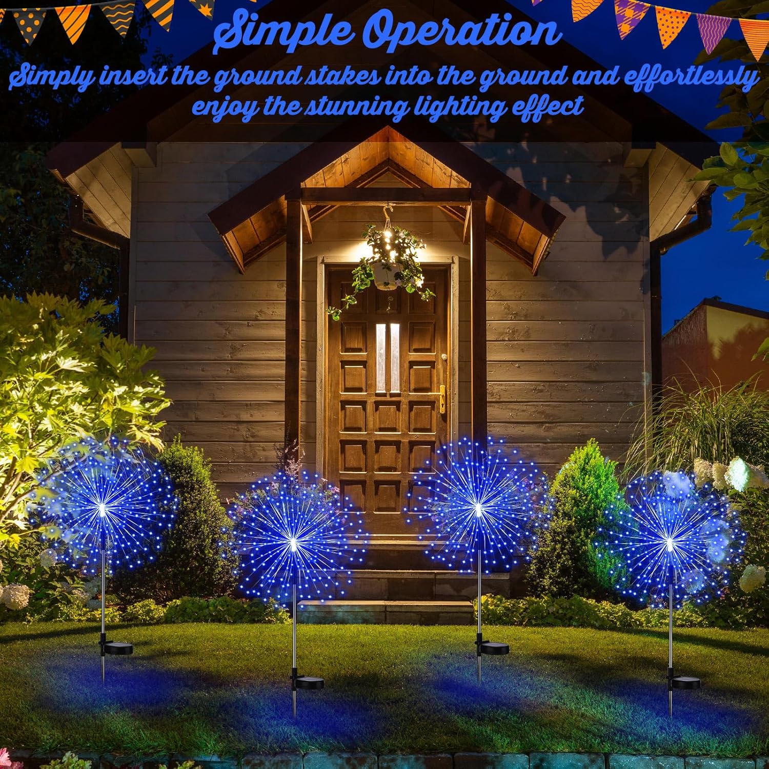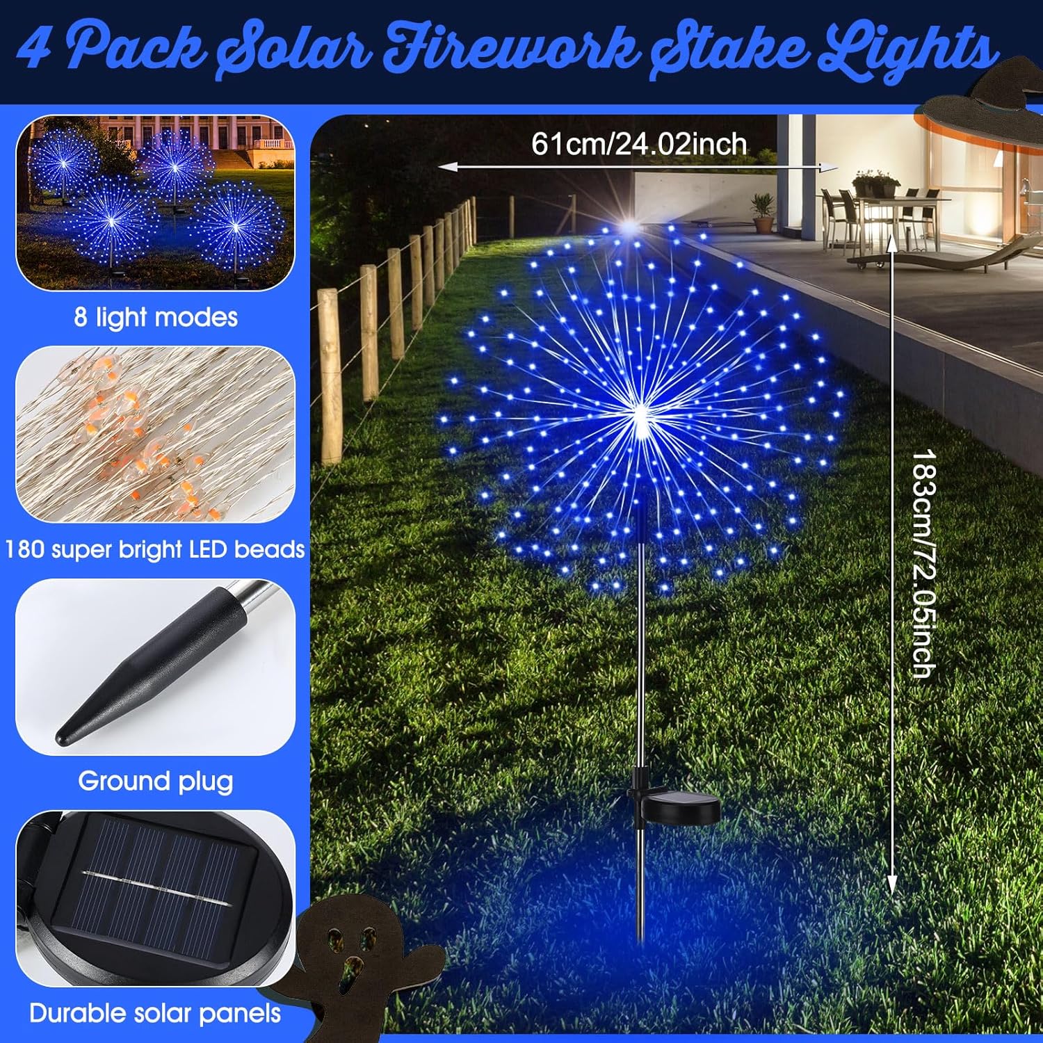 - Plug in Firework Lights: each set contains 4 blue outdoor solar fireworks lights, each light string is equipped with 180 LED beads; These gorgeous garden firework lights are suitable for creating a strong festive atmosphere in your garden, patio or yard, adding brilliant brilliance to your outdoor space