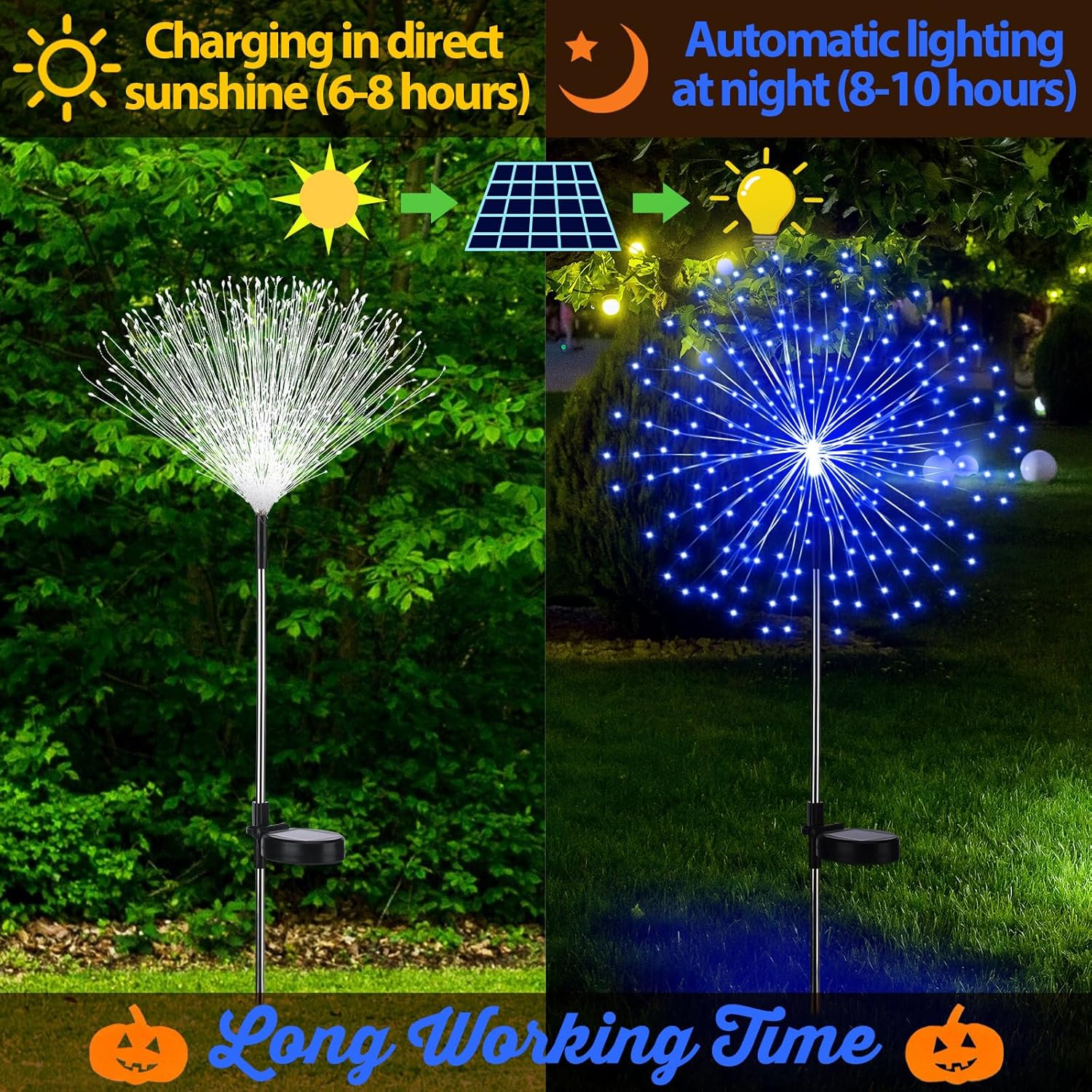 - Convenient Lighting Solution: these solar firework lights are made up of rustproof and weatherproof materials, ensuring a long lifespan despite weather conditions; They charge themselves during day and elegantly lighting your space at night; Embrace this novel way of outdoor decoration