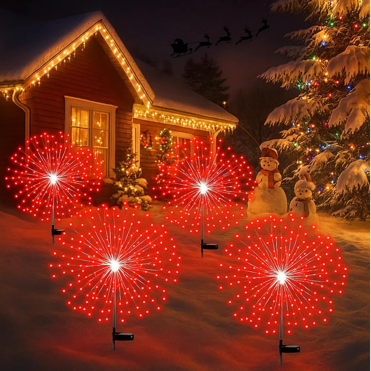 - Plug in Firework Lights: each set contains 4 red outdoor solar fireworks lights, each light string is equipped with 180 LED beads; These gorgeous garden firework lights are ideal for creating a strong festive atmosphere in your garden, patio or yard, adding brilliant brilliance to your outdoor space