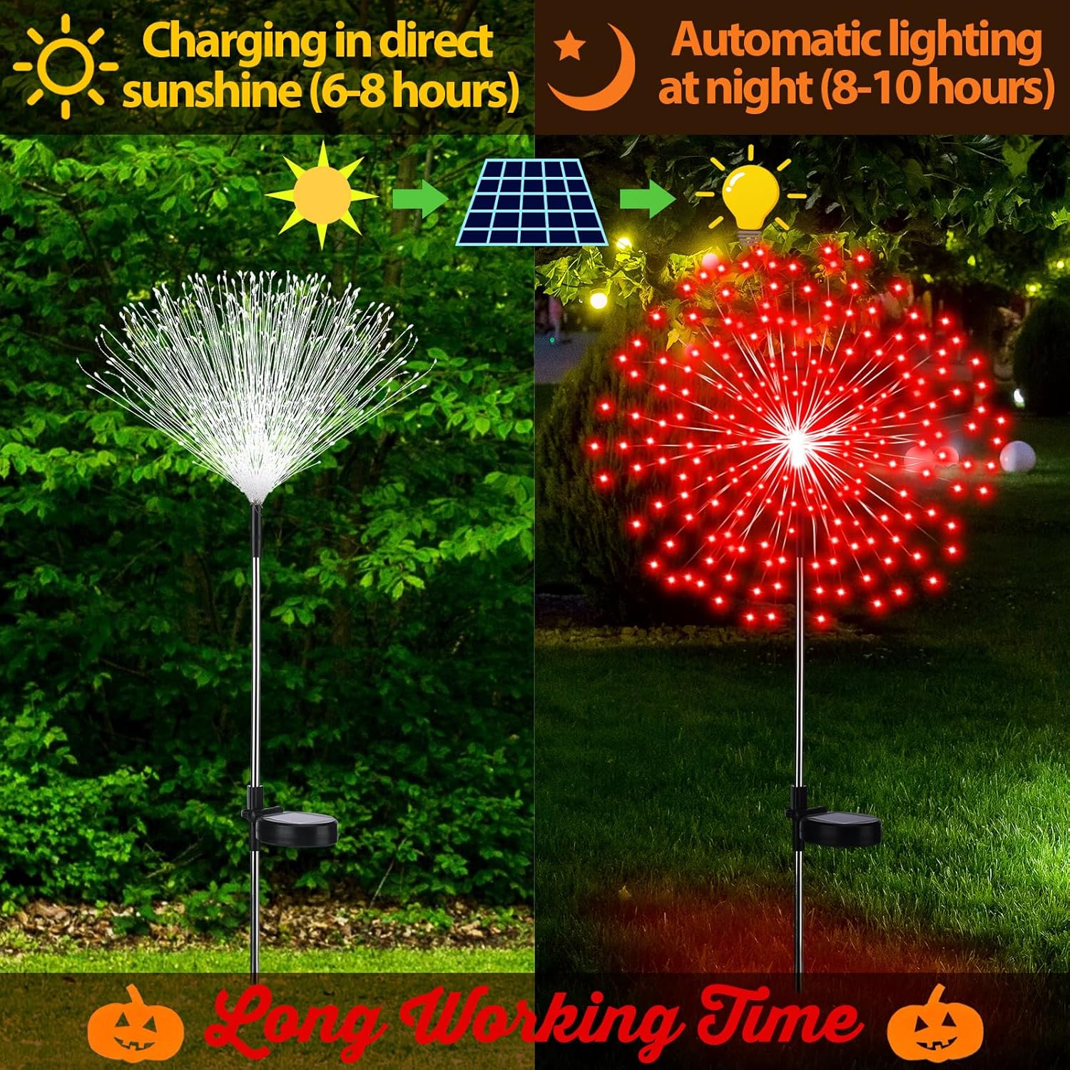 - Convenient Lighting Solution: these solar firework lights are made up of rustproof and weatherproof materials, ensuring a long lifespan despite weather conditions; They charge themselves during day and elegantly lighting your space at night; Embrace this novel way of outdoor decoration