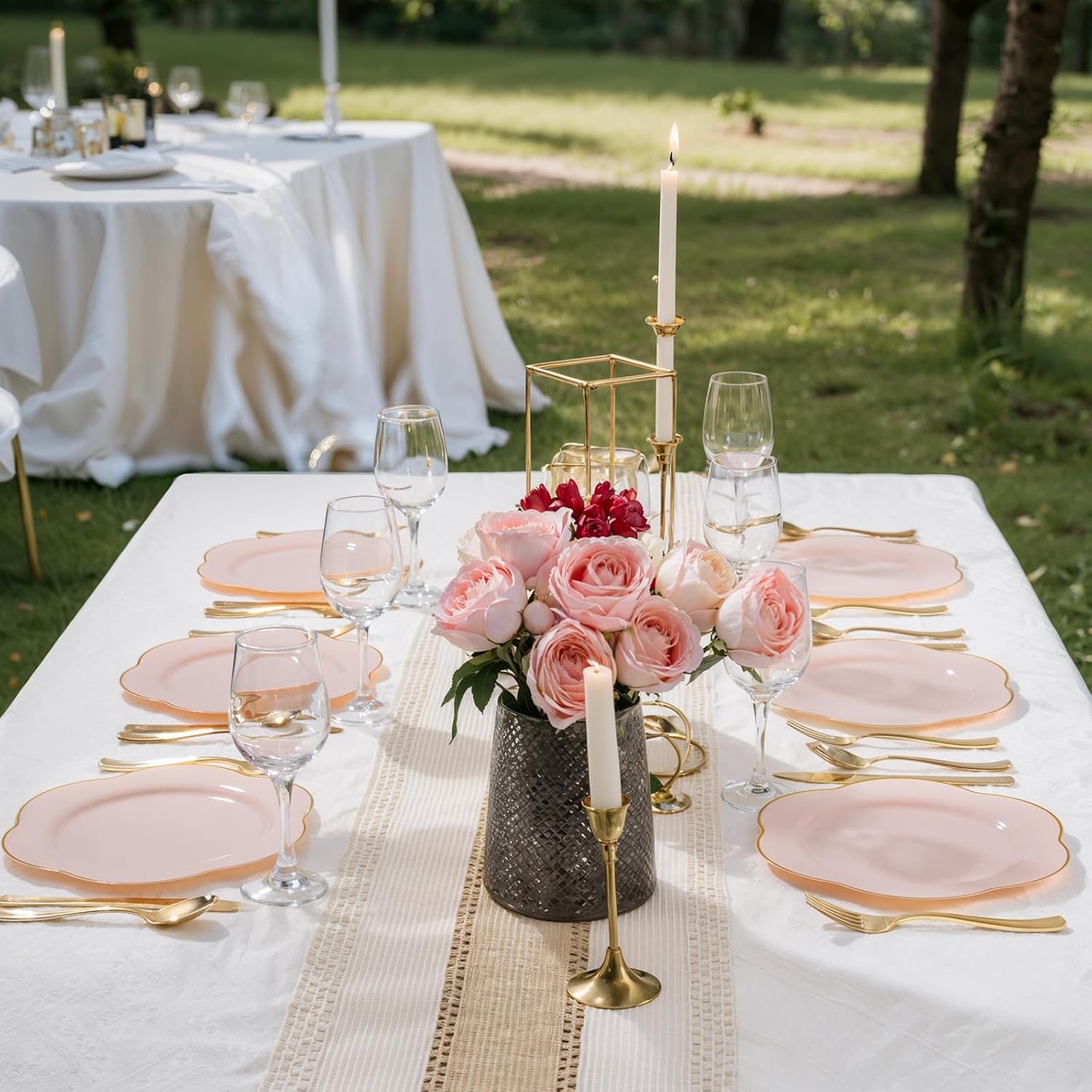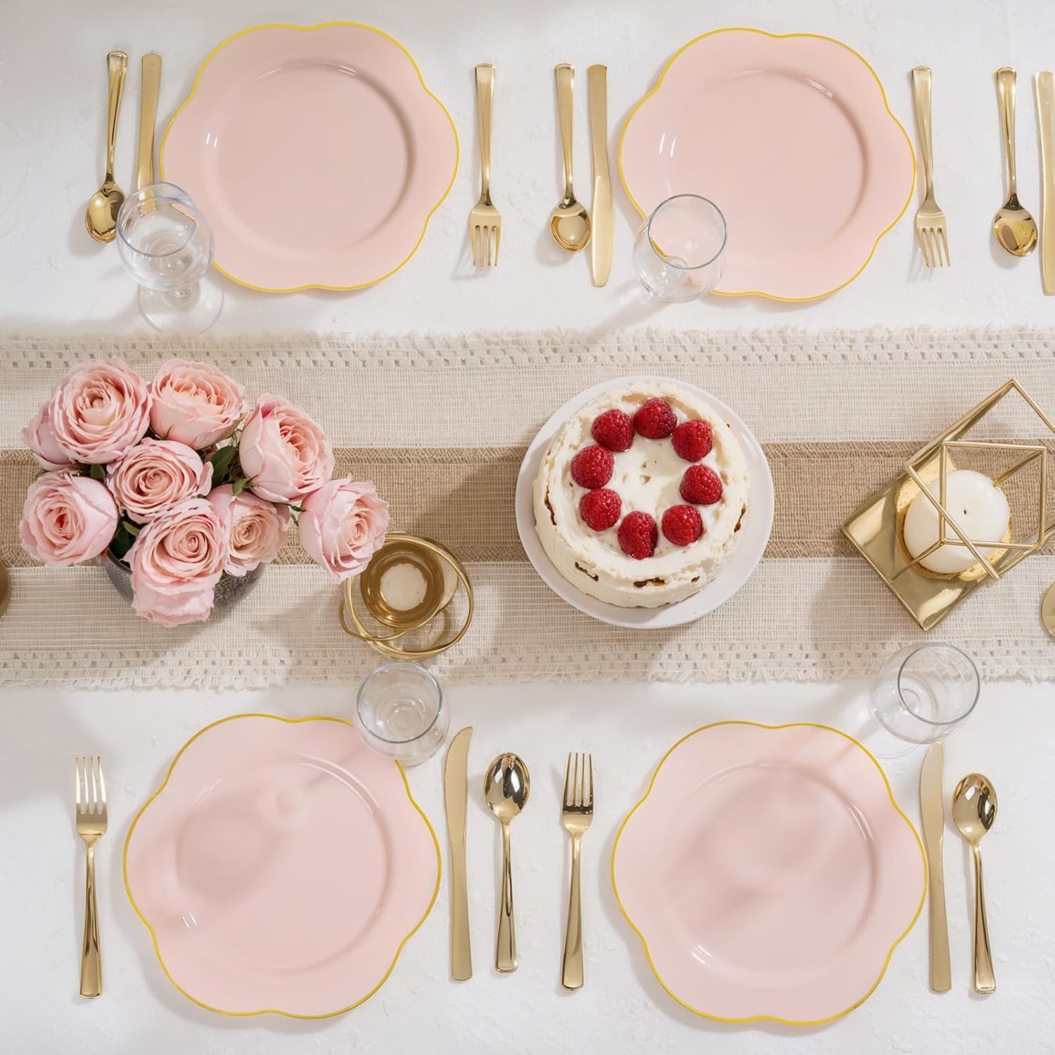 - Premium Set of Dinnerware: Our Phnom Penh-style pink plastic dinner plates are the perfect choice for your gathering. You'll get everything you need with this set of tableware - the pink and gold plates (100 pieces of 10-inch dinner plates). This floral plastic plates are ideal for the event you're planning.