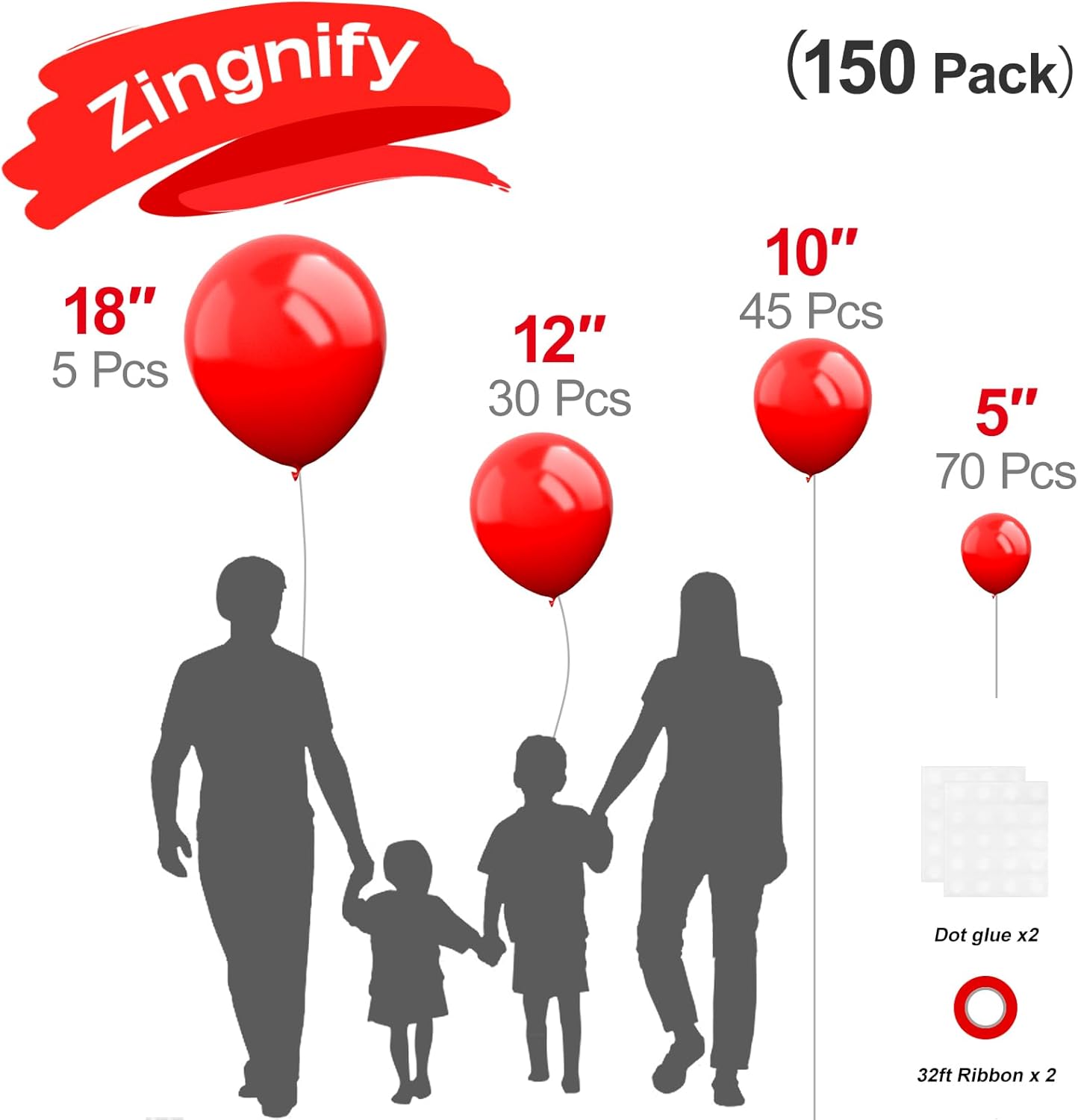 - Included Components : 2 pieces of glue,, 2 rolls of ribbon, Red Balloons, 150 pcs Different Sizes Pack of 18 Inch 12 Inch 10 Inch 5 Inch Matte Red Latex Balloons 2 pieces of glue,, 2 rolls of ribbon, Red Balloons, 150 pcs Different Sizes Pack of 18 Inch 12 Inch 10 Inch 5 Inch Ma… See more