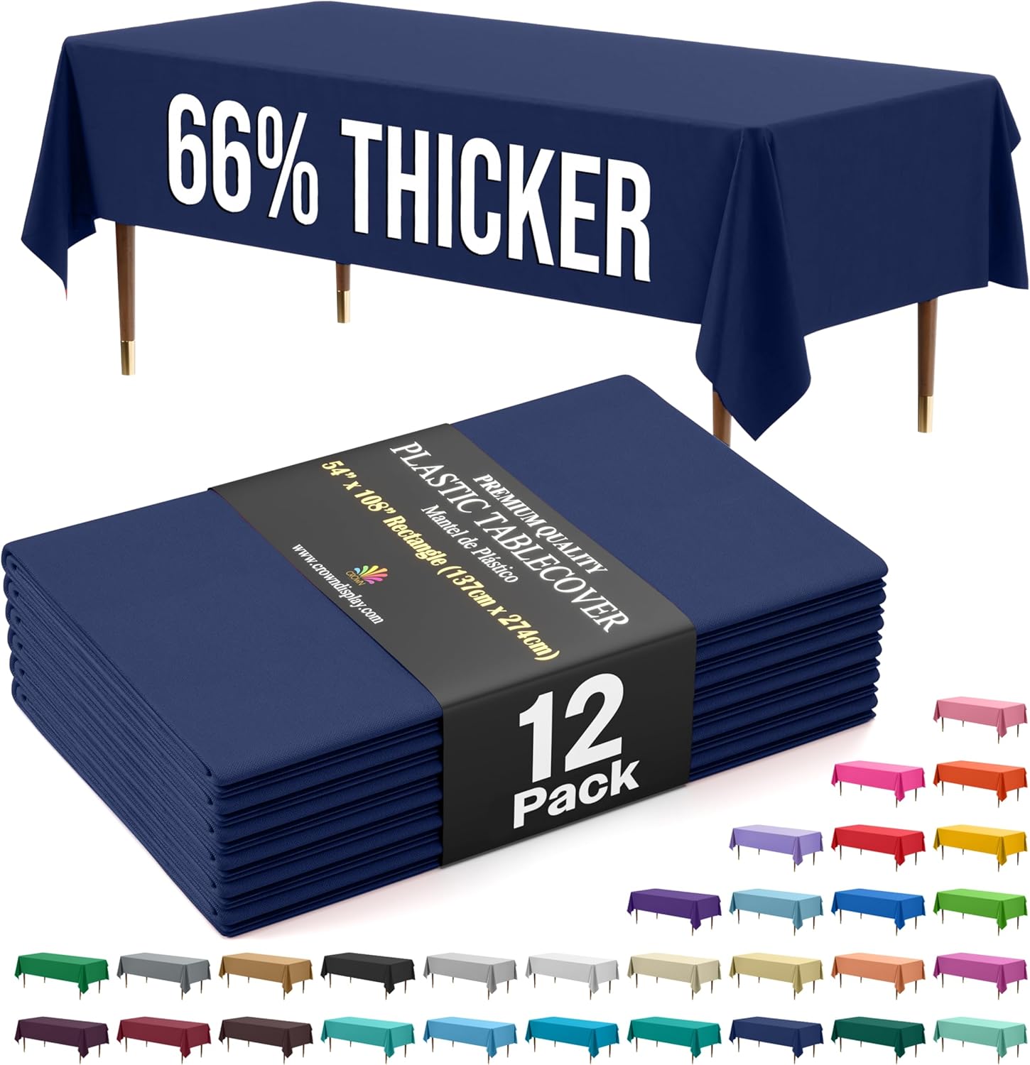 - 66% THICKER - premium quality protection This 12 pack of 54 in. X 108 in. Rectangle Navy Blue plastic tablecloths will cover any table up to 8 feet. Unlike your typical paper Table clothes these disposable table covers for parties are spill proof and waterproof tablecloth