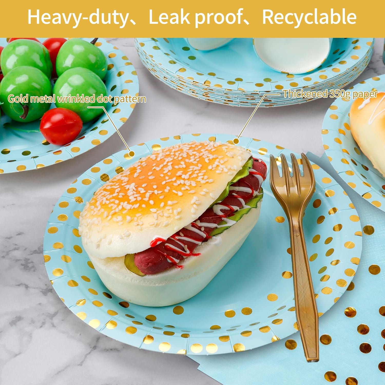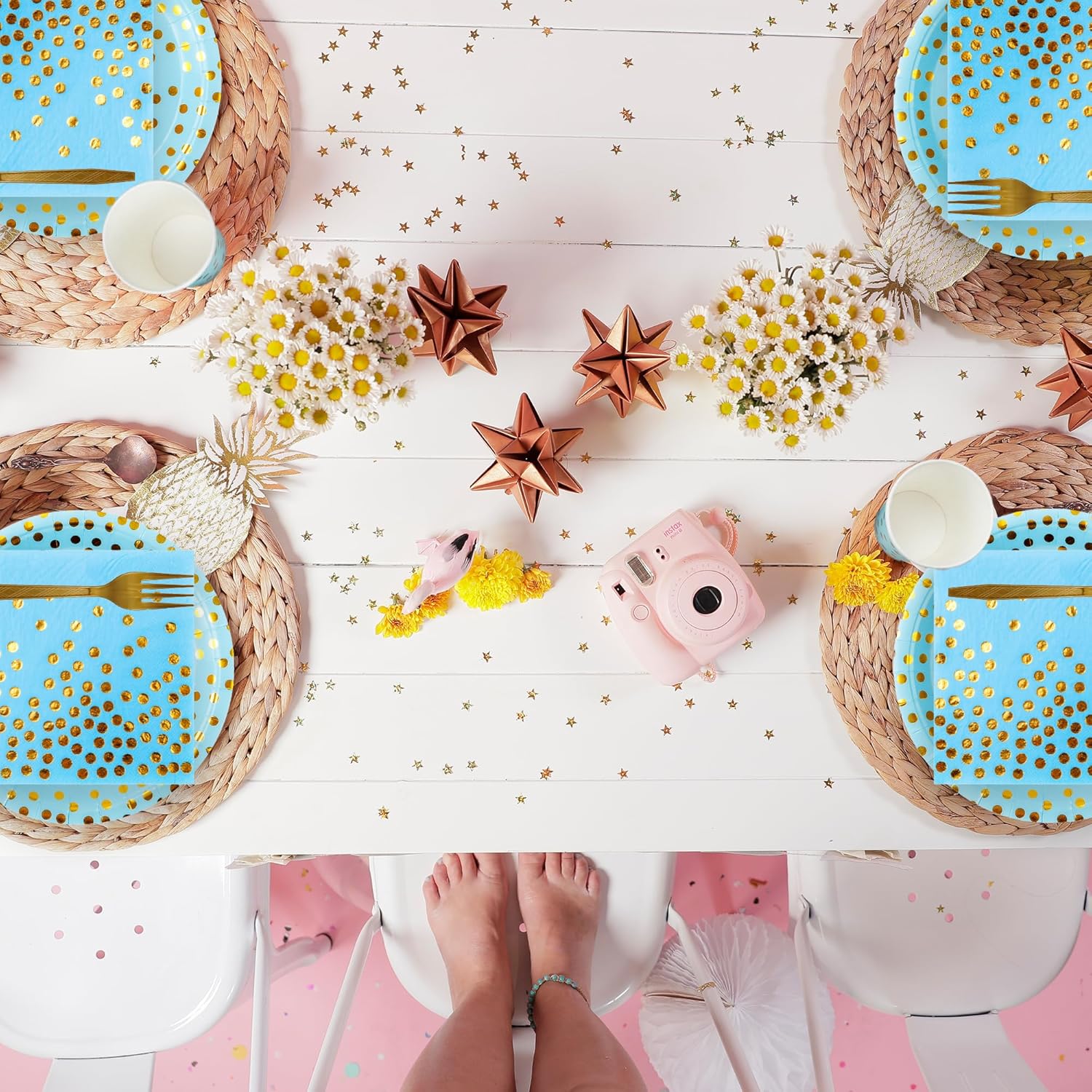 - Blue Birthday Plates Gold Foil Dot Design: Our Gold Dot Party Paper Plates And Napkins Are Decorated With Gold Dots. It Increases The Dining Atmosphere While Being Very Stylish And Beautiful, The Colors Are Gorgeous And Attractive, Adding A Touch Of Charm