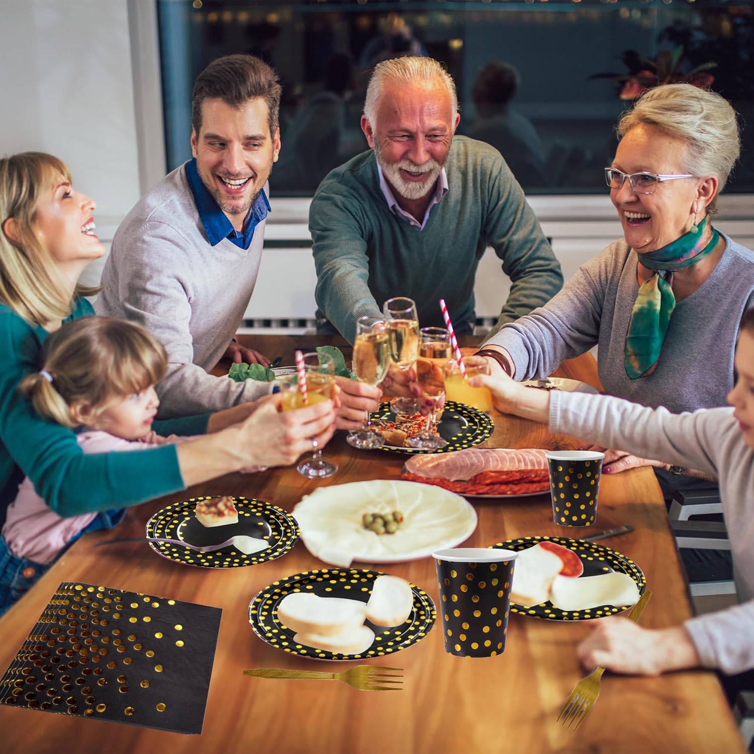 - Birthday Plates And Napkins Party Supplies: This 160-Piece Set Includes 40 X 7-Inch Paper Plates, 40 X 9-Ounce Paper Cups, 40 Napkins, And 40 Forksperfect For 40-Guest Anniversary Parties Needing Coordinated Tableware Sets, These Plates Pair Seamlessly With Our Gold Dot Napkins For Formal Events