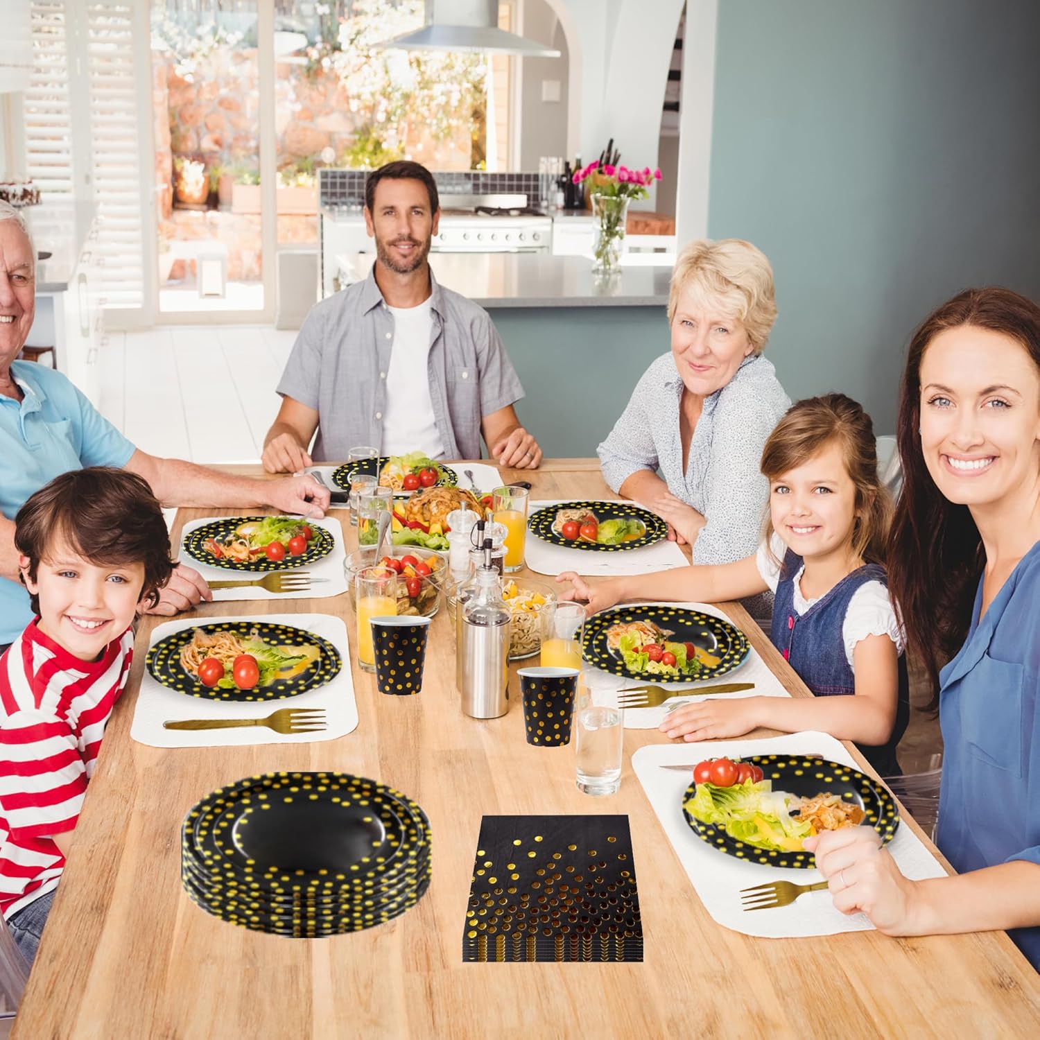 - Black And Gold Plates: Our Gold Dot Paper Plates Are Made Of White Card Environmentally Friendly Paper, Which Is Not Easy To Be Damaged Or Torn. They Are Durable, Safe And Non-Toxic, Bpa-Free, And There Is No Need To Worry About Harming The Environment. The Napkins Are Made Of Wood Pulp Water-Based Ink, Which Is Highly Absorbent And Very Skin-Friendly. (Please Do Not Heat The Paper Plates In The Microwave