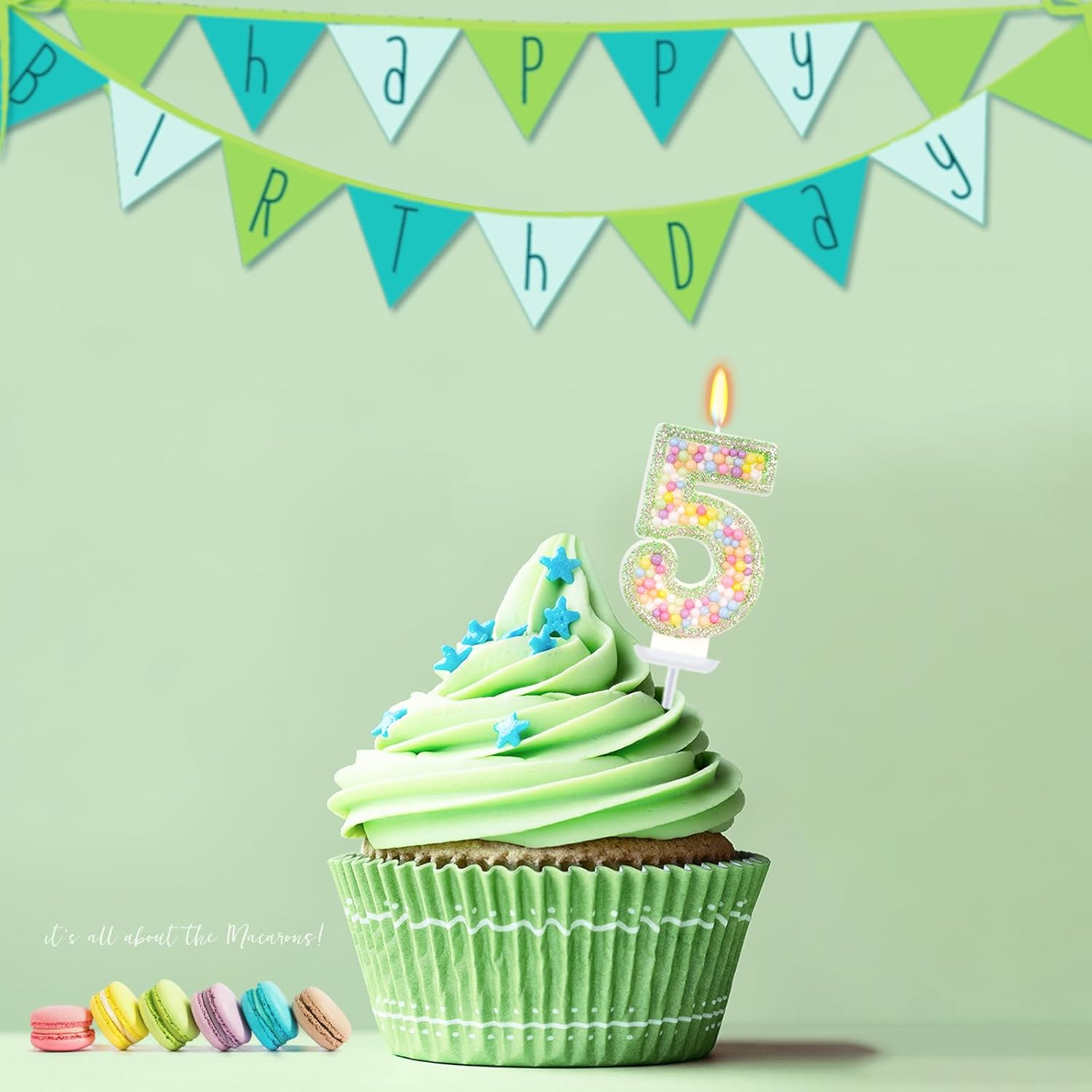 - Pretty Design: With glitter and multi-colored delicate simulated balls on the candle, this macaron number candle looks adorable and delightful - great decoration for birthday/party