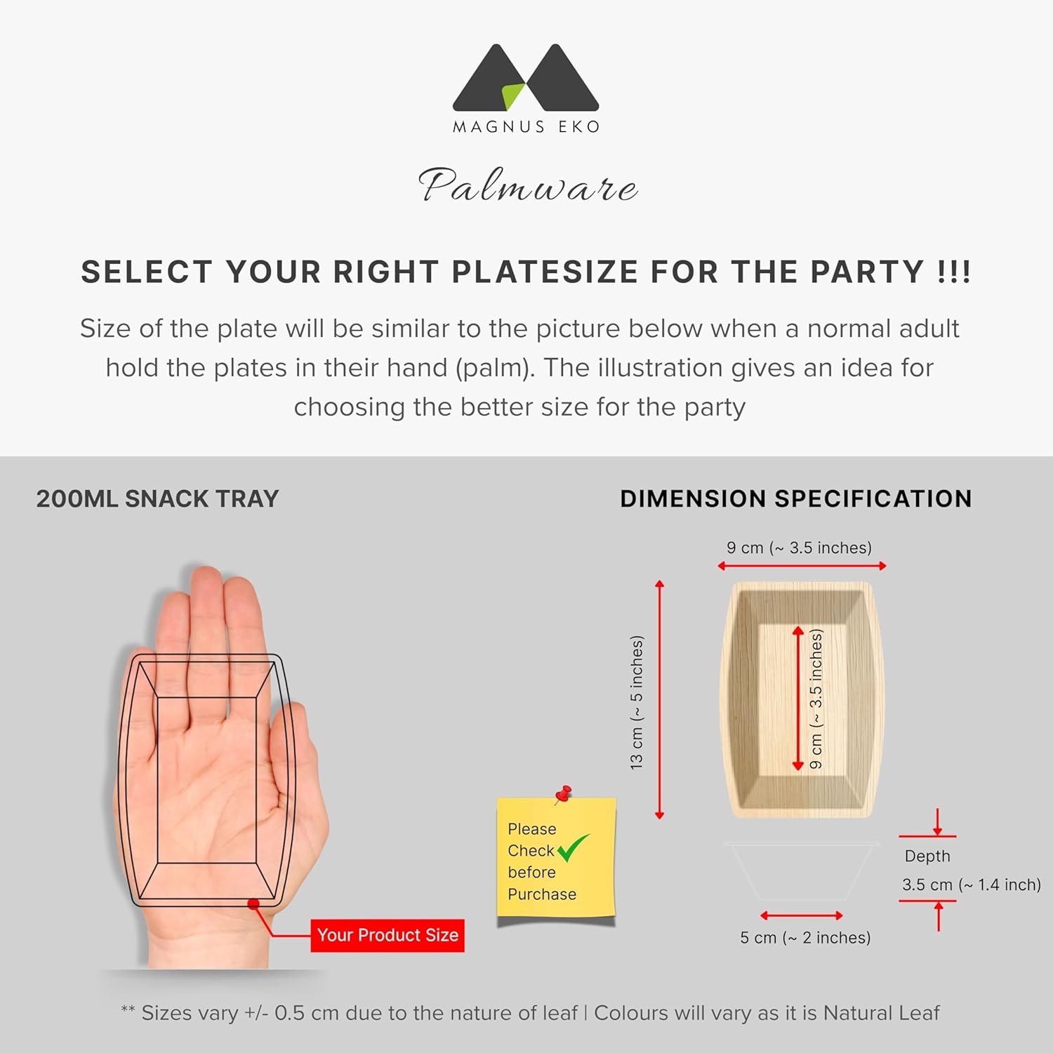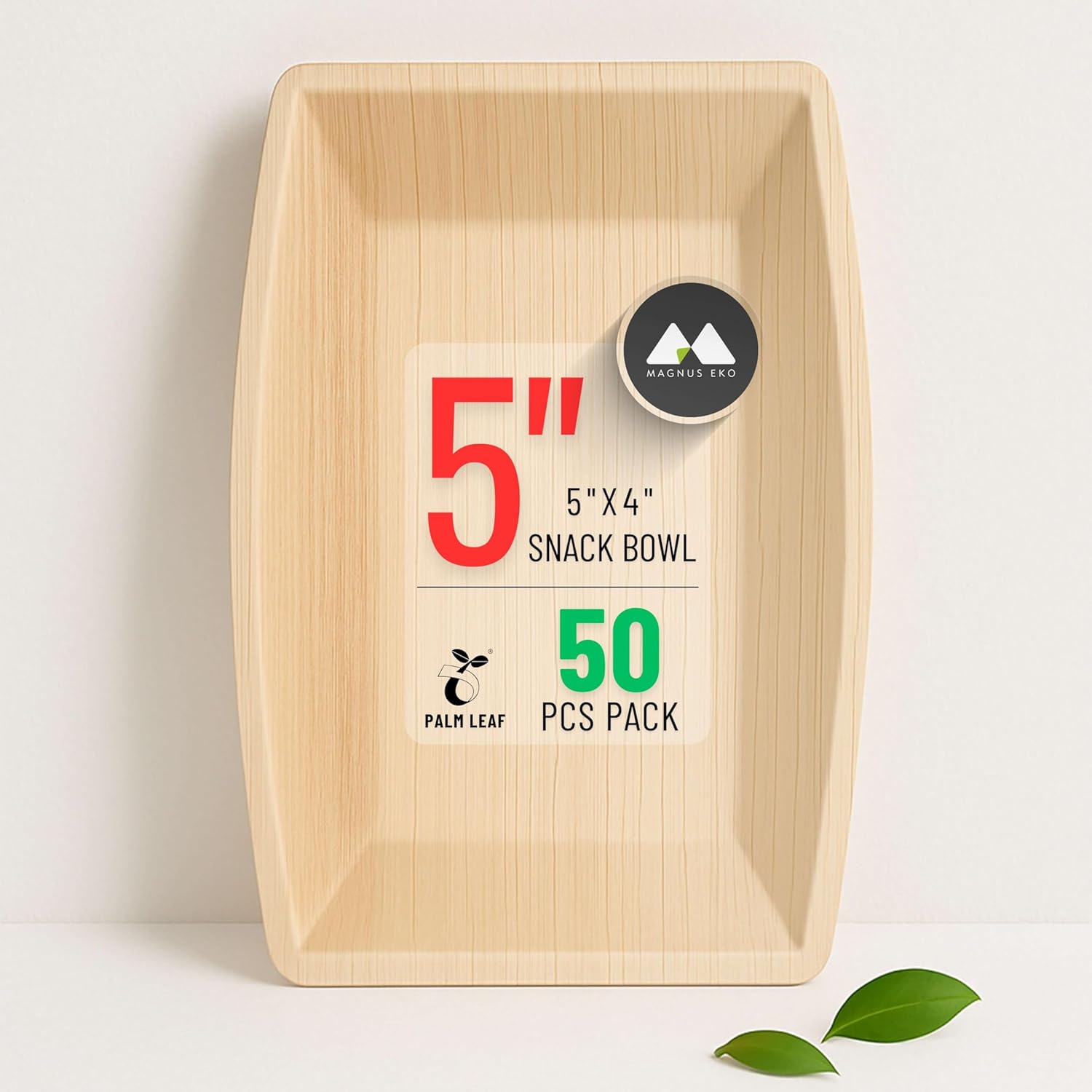 - DURABLE & LONG-LASTING: These disposable wooden bowls like is heavy duty in nature, works for hot & cold food. As no chemicals are added, these plates are oven safe & can be used by all. Each tray has a rustic & wooden appearance that makes it look more elegant than paper trays or plastic trays. These bamboo disposable trays are tough yet lightweight like paper.