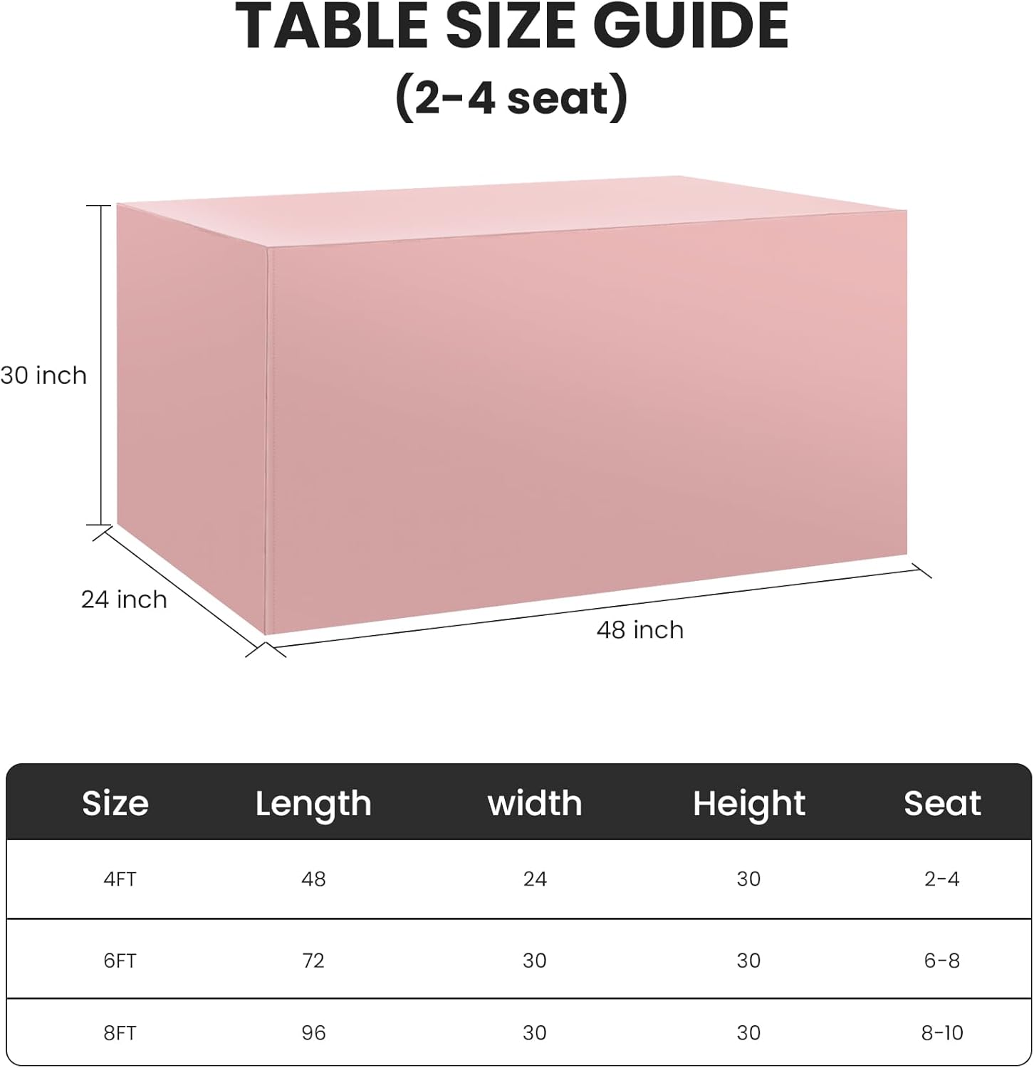 - Package & Size:Each package contains 2 pieces fitted table clothes.We have 4FT(48L x 24W x 30H)/6FT(72L x 30W x 30H)/8FT(96L x 30W x 30H) for you to choose from