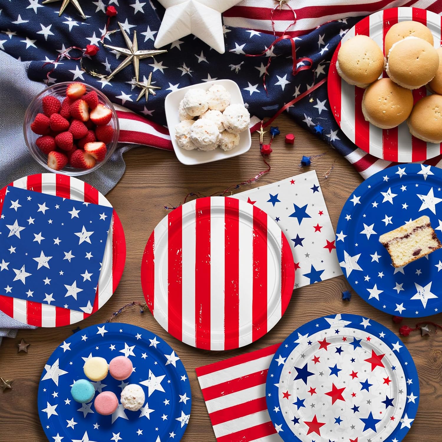 4th of July Party Supplies Set-American Patriotic Theme for Independence & Election Day Decorations, Includes Dinner & Dessert Plates, Napkins- for Patriotic & 4th of July Party Decorations-48 Guests