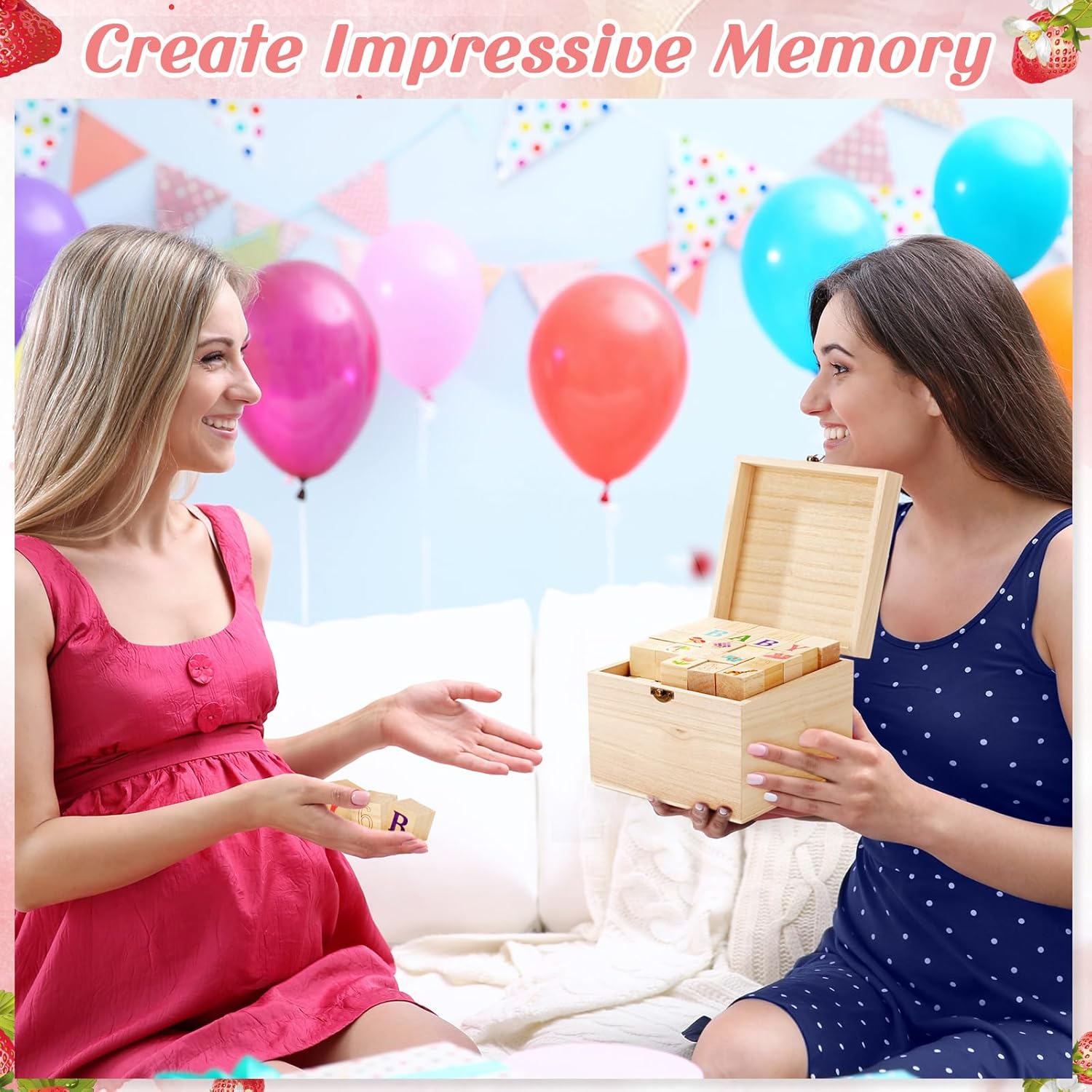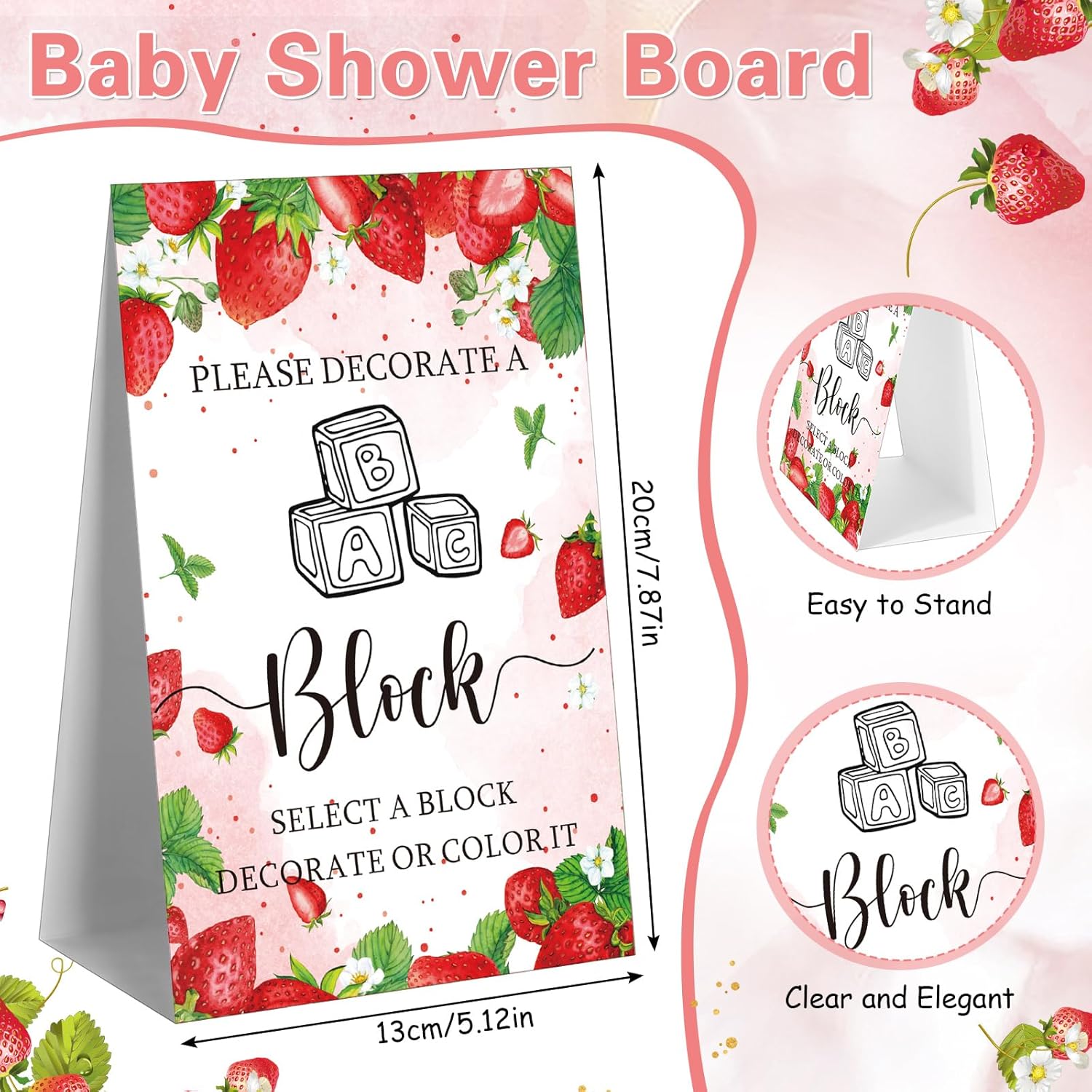 Marsui 136 Pcs Baby Shower Blocks to Decorate Game Kit Includes 98 Wooden Blocks, 36 Markers, 1 Game Sign, 1 Storage Box for Baby Shower Gender Reveal Activity Party Decorations(Strawberry)