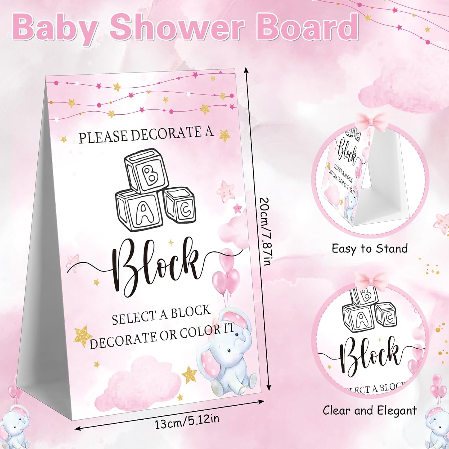 Marsui 136 Pcs Baby Shower Blocks to Decorate Game Kit Includes 98 Wooden Blocks, 36 Markers, 1 Game Sign, 1 Storage Box for Baby Shower Gender Reveal Activity Party Decorations(Pink Elephant)