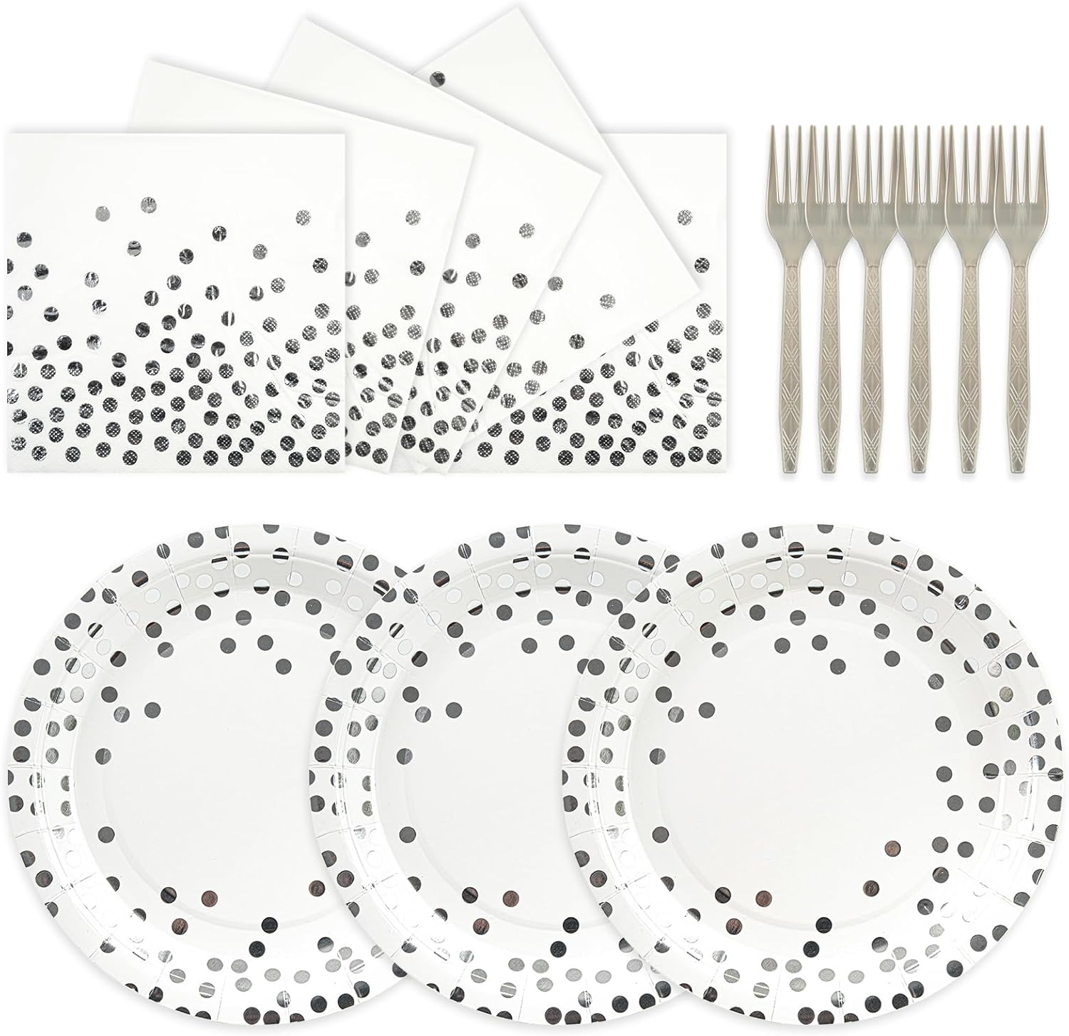 - 【PREMIUM GOLD FOIL DOT DESIGN】: Our white and sliver dot party paper plates and napkins are decorated with sliver polka dots. Very stylish and beautiful with gorgeous and charming colors. Your guests will love this elegant and premium design.