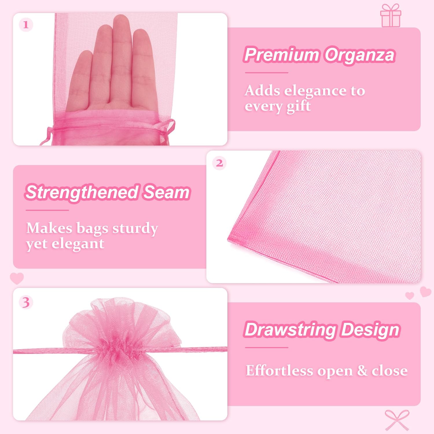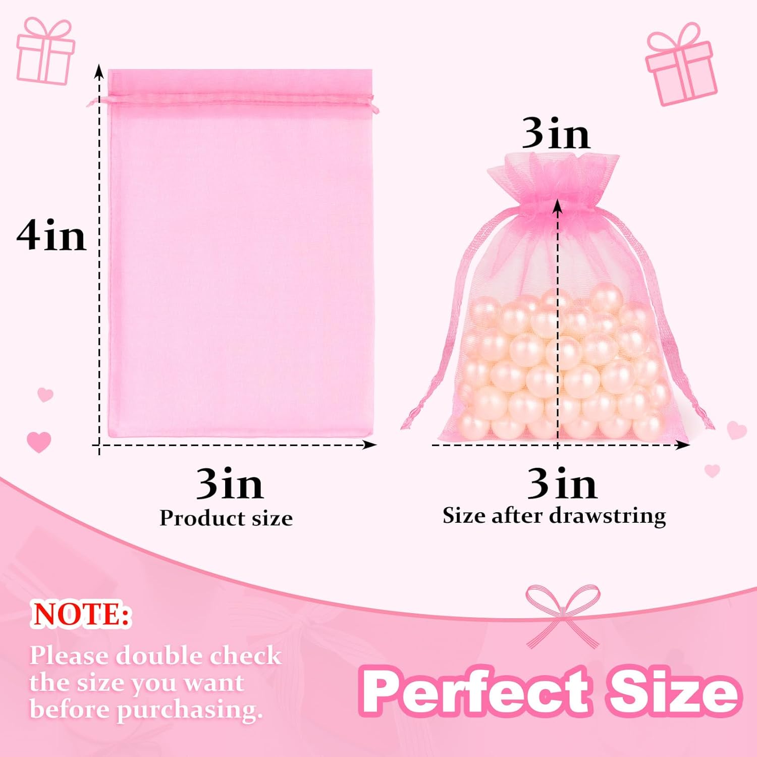 - Included Components : 50 pcs pink organza bags 3x4