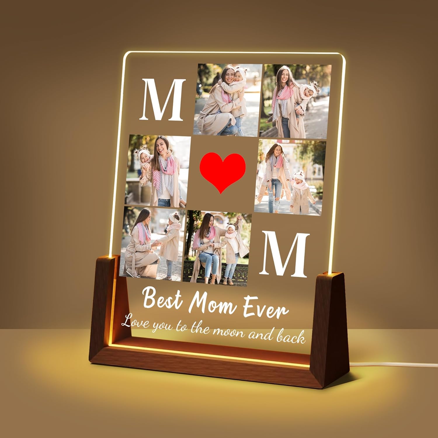 - Personalized Mothers Day Gifts For Mom Grandma Wife: Customized acrylic plaque night light with photo frame is a practical and touching gift with warm photos and text printed on it. It is the best mom gifts for mom grandma wife wife from daughter son husband. You can easily create a special Mother's Day decorations gifts for your family by simply uploading pictures.