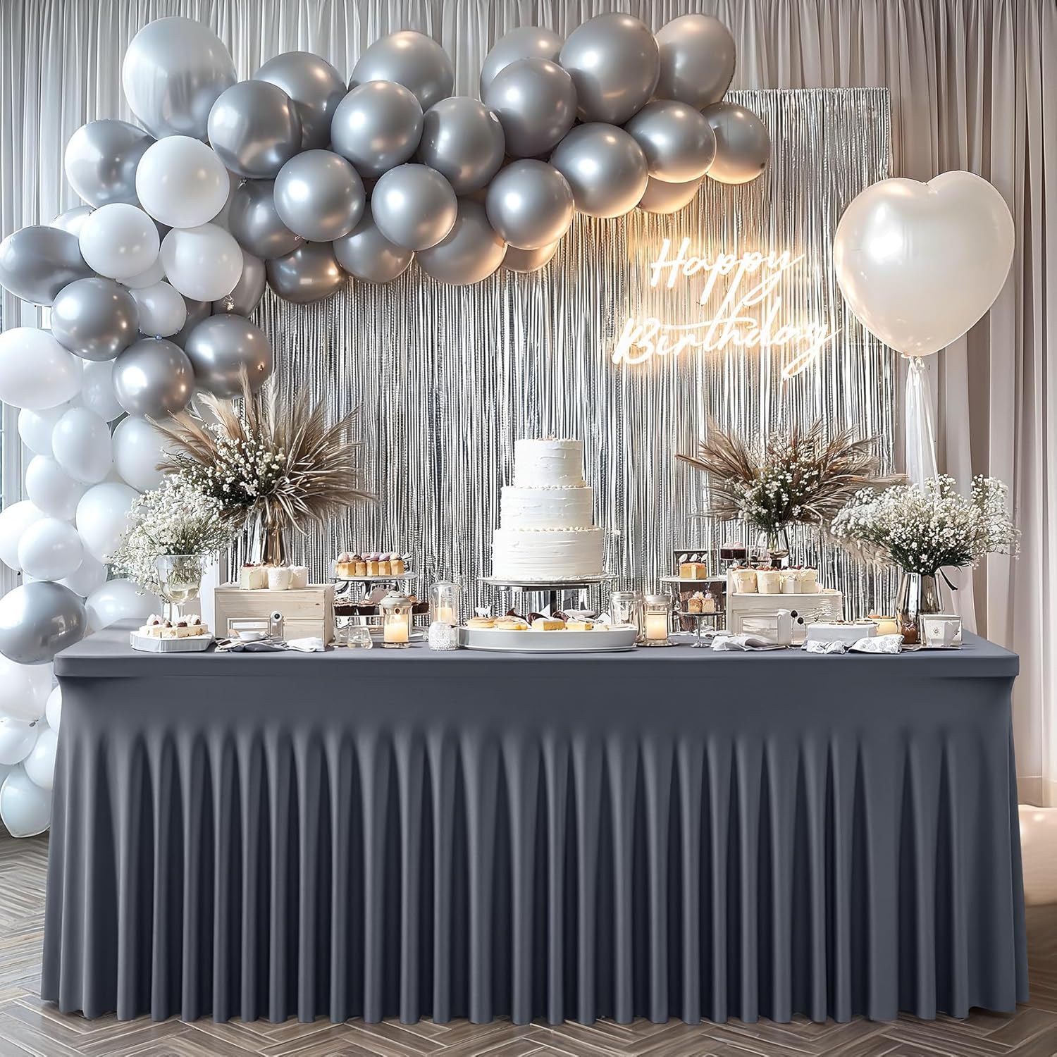 2 Packs Grey Table Clothes for 4 Foot Rectangle Tables, One-Piece Wrinkle Resistant Stretch Spandex Table Covers with Skirt for Event Banquet Wedding Birthday Party