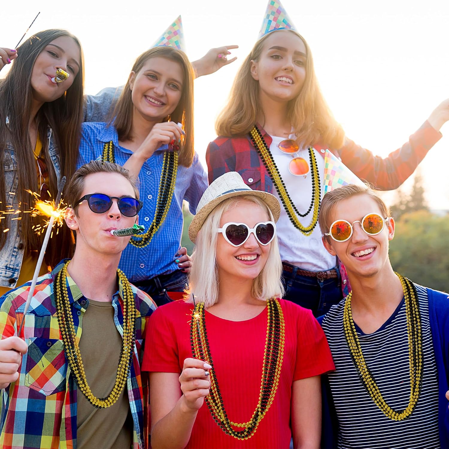 30PCS New Years Beads Necklaces, Black Gold Beaded Necklace Party Supplies, 33" New Years Eve Graduations Necklaces Decorations, Festival New Years Graduations Mardi Gras Parade Throw Accessories