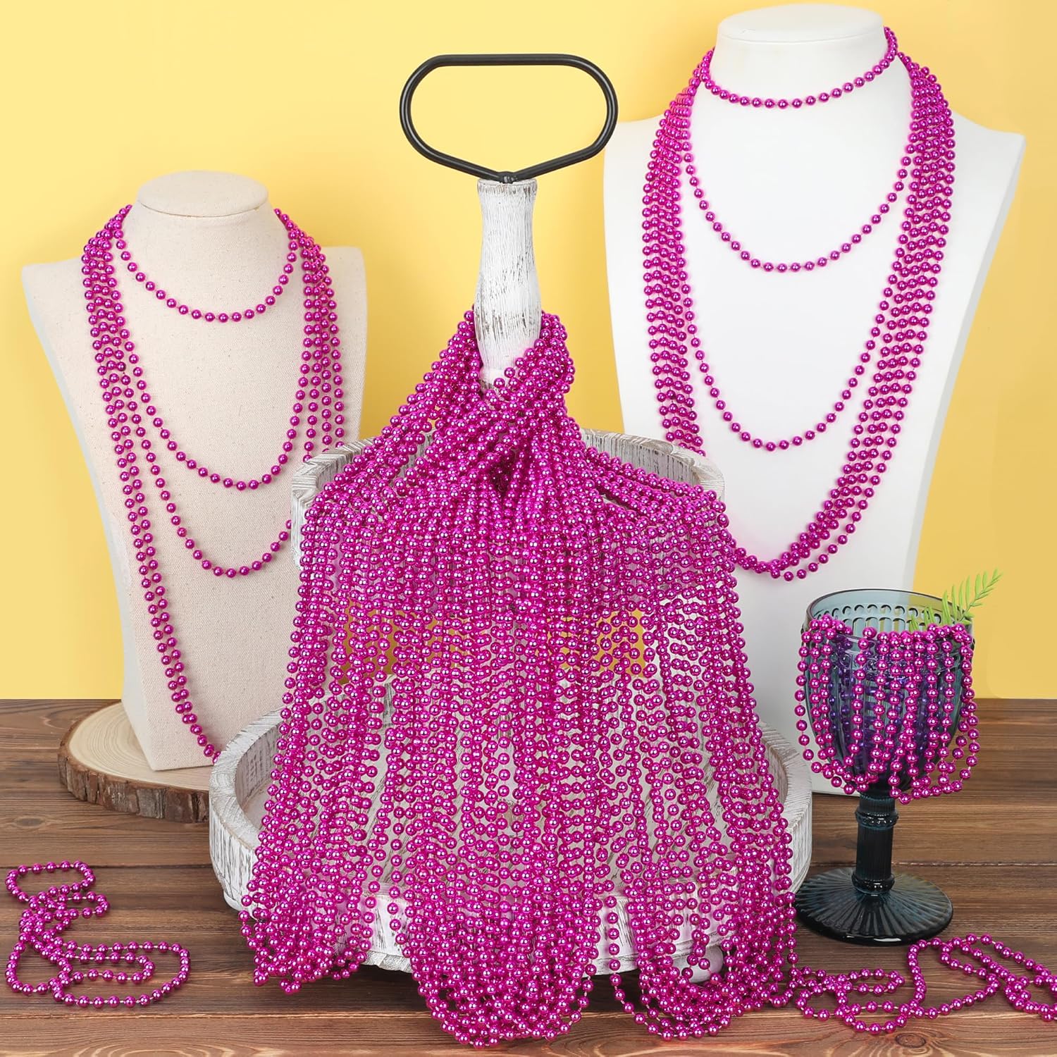 30PCS Mardi Gras Beads, Breast Cancer Awareness Accessories Necklace Party Favors, 33" Mardi Gras Valentines Necklace Stuff, Festival Parade Throw Accessories for Wedding Birthday Gender Reveal