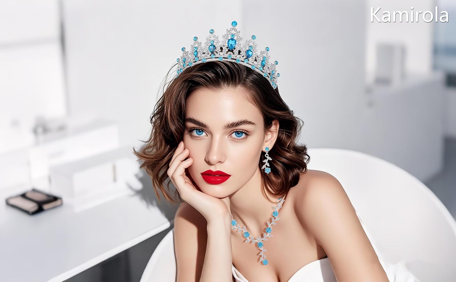 Kamirola Tiaras and Crowns for Women,Tiaras Earrings Necklace, Crystal Bridal Jewelry Set, Costume Party Halloween Prom Pageant Jewelry for Women(TR45)