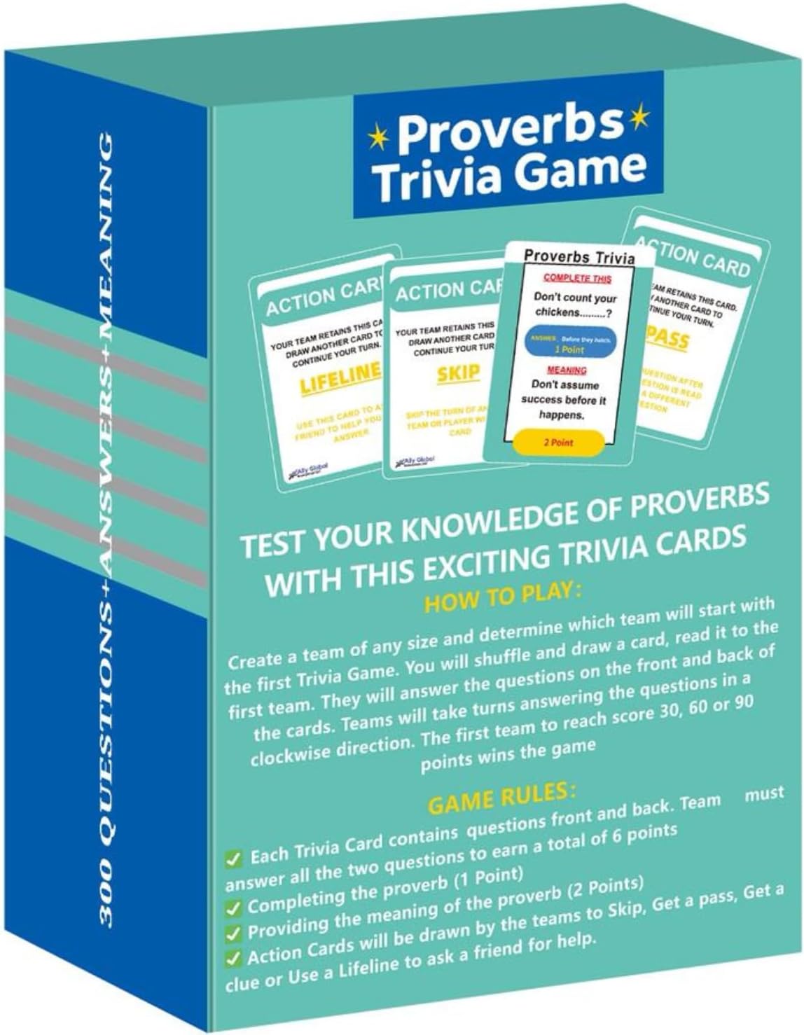 Proverbs Trivia Games, 300 Questions with Answers & Meanings | Fun Family Party Board Games, Team Game Night, Educational Trivia Card Game, Improves Wisdom