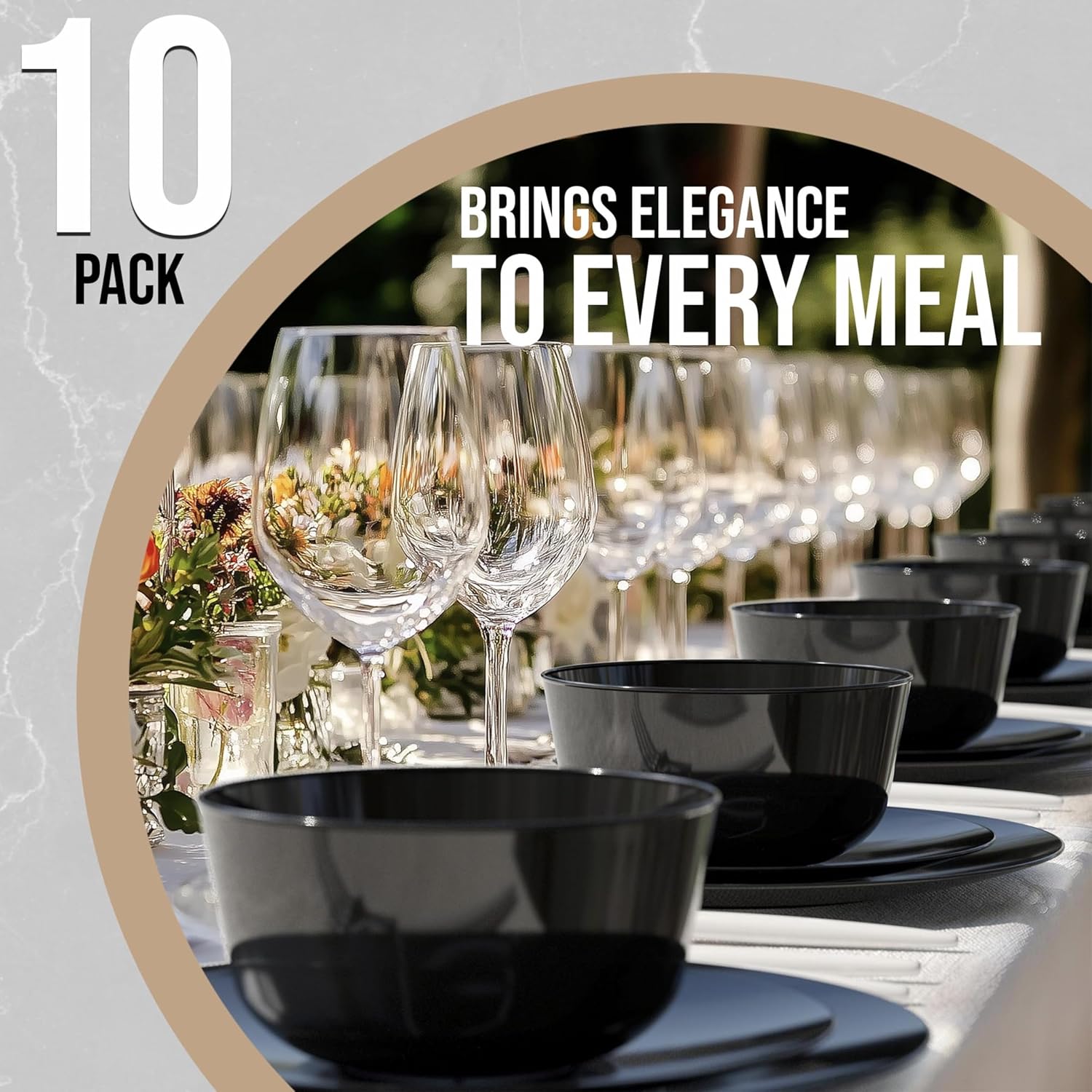 Trendables Plastic Bowls Disposable Bowls 24 Oz Bowl Set Of 10 Black Fancy Plastic Serving Dishes Perfect for Parties and Events Disposable Candy Bowl