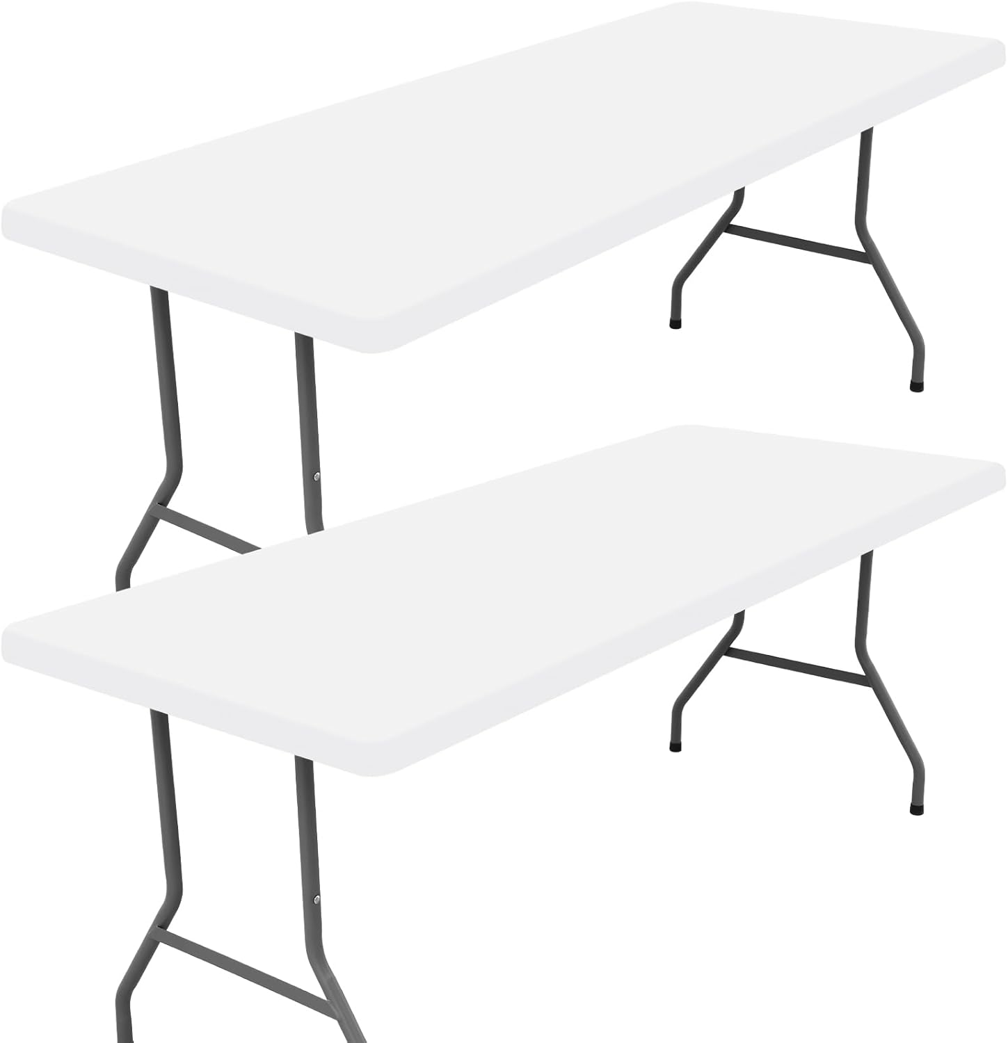 Spandex 5 Foot Rectangle Table Cloth 2 Pack, Elastic Fitted Tablecloths for Picnic, Stretch Washable Patio Table Cover for Outdoor, Camping, Banquet and Parties (White, 36"x60")